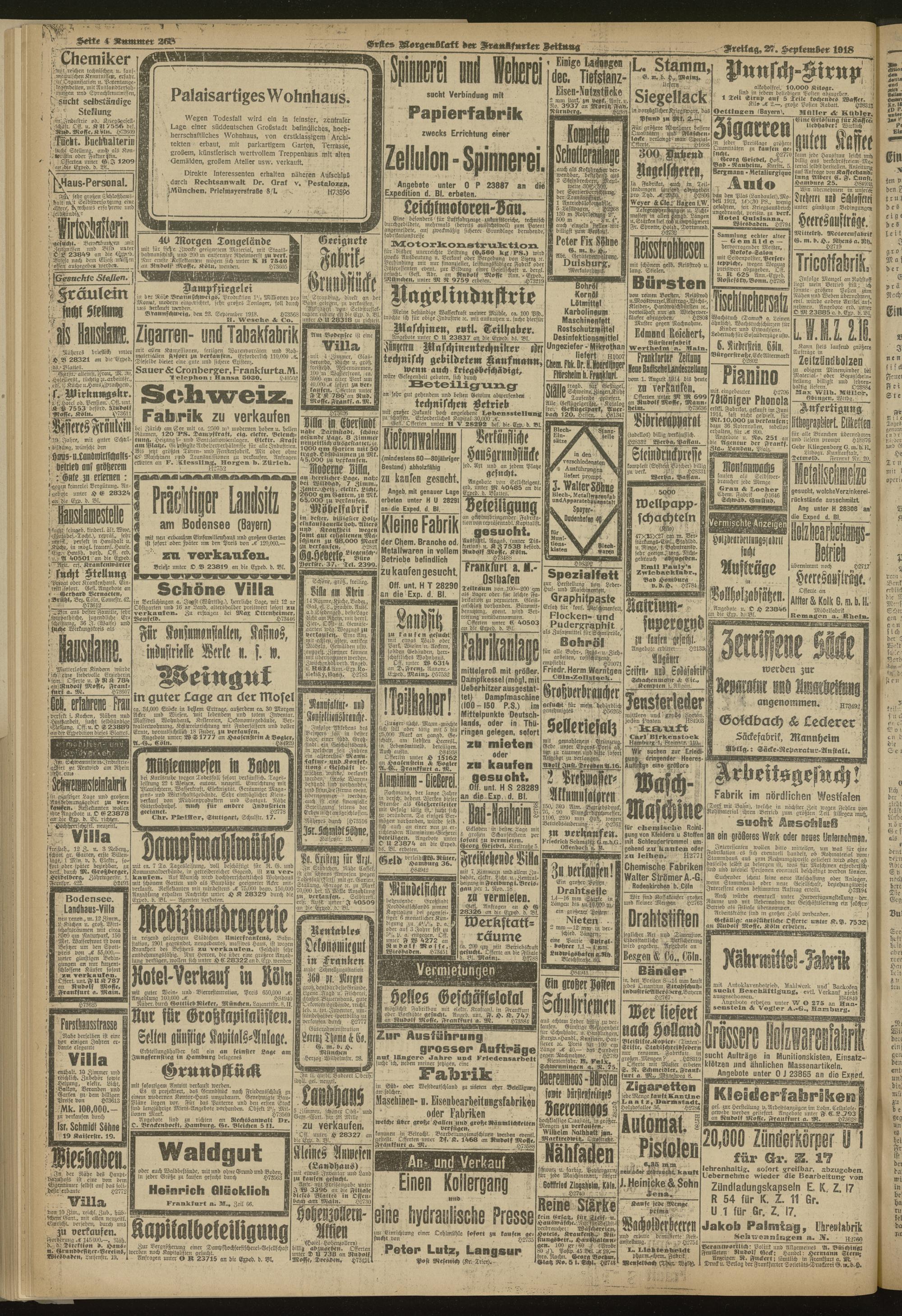 27.09.1918 = Nr. 268. Erstes Morgenblatt