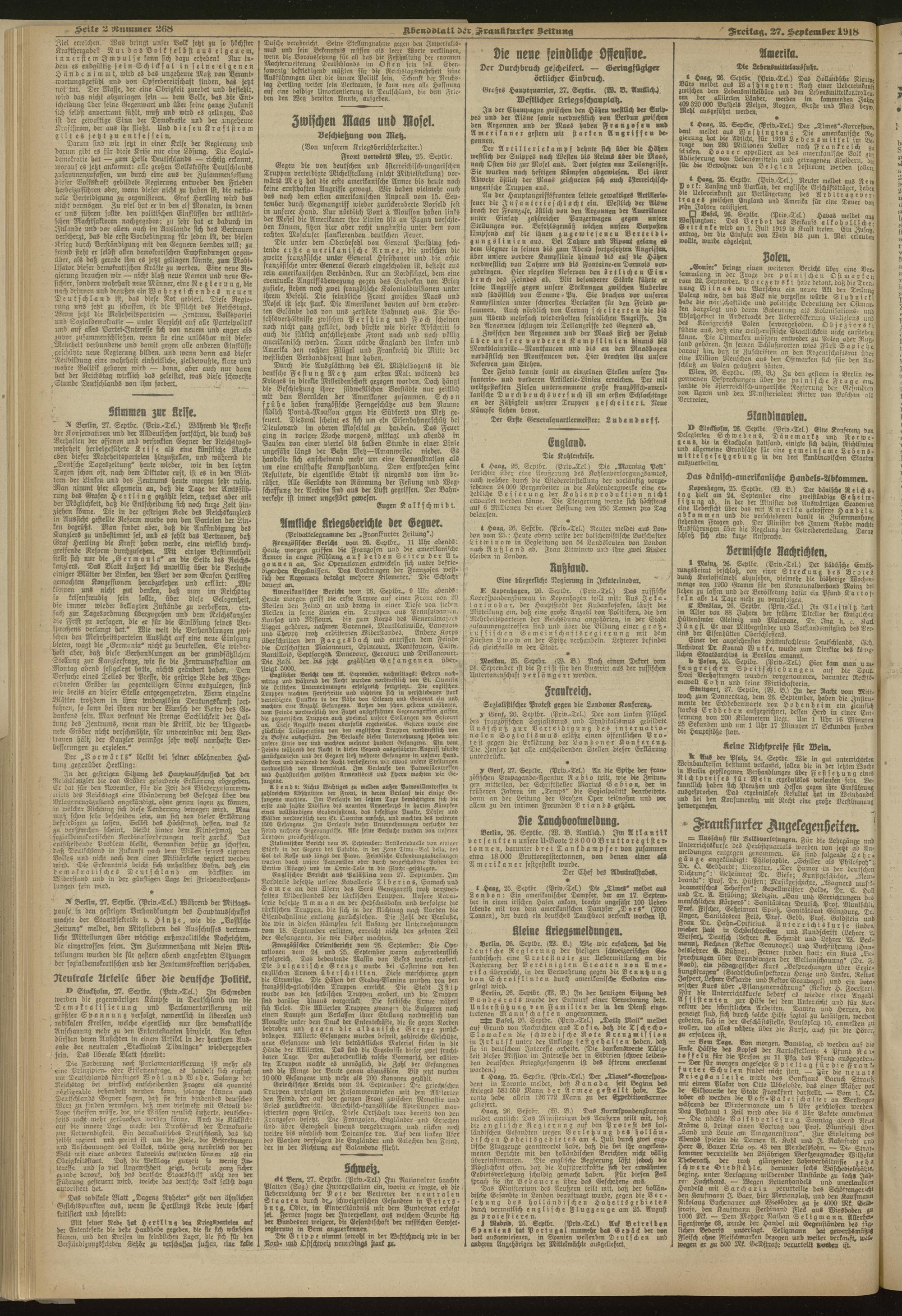 27.09.1918 = Nr. 268. Abendblatt