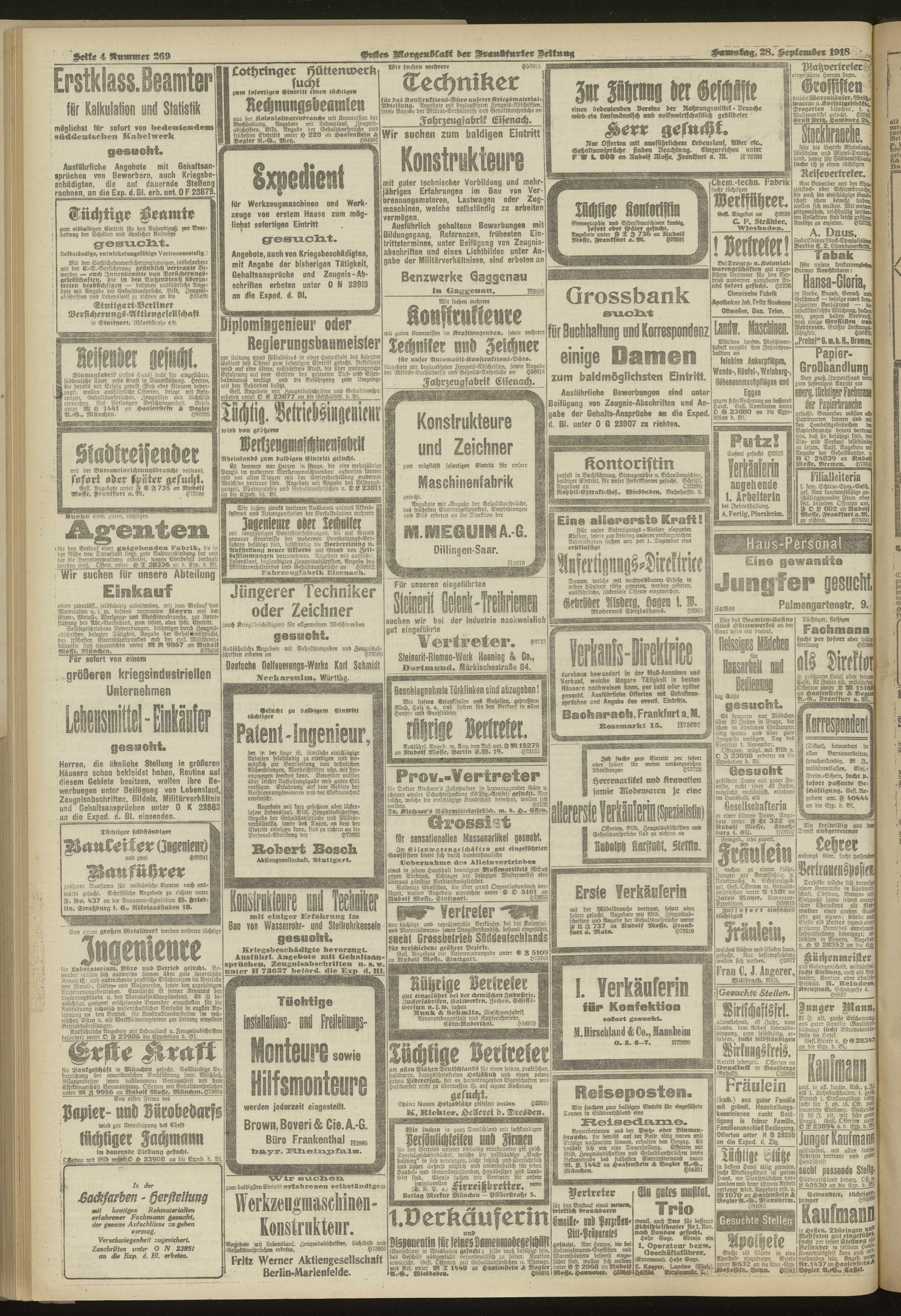 28.09.1918 = Nr. 269. Erstes Morgenblatt