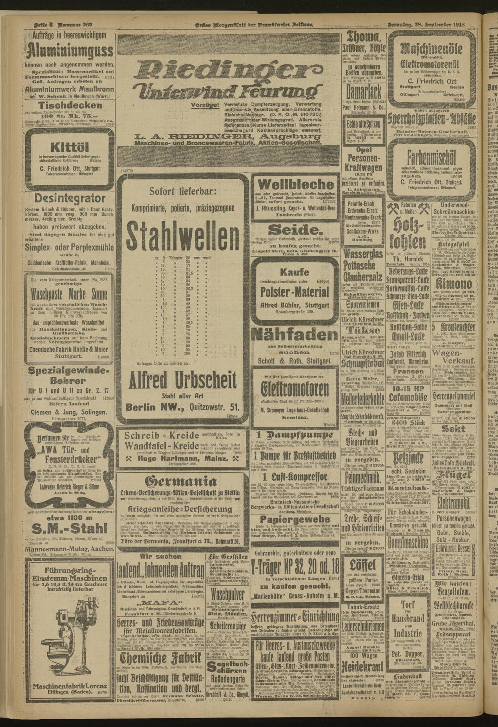 28.09.1918 = Nr. 269. Erstes Morgenblatt