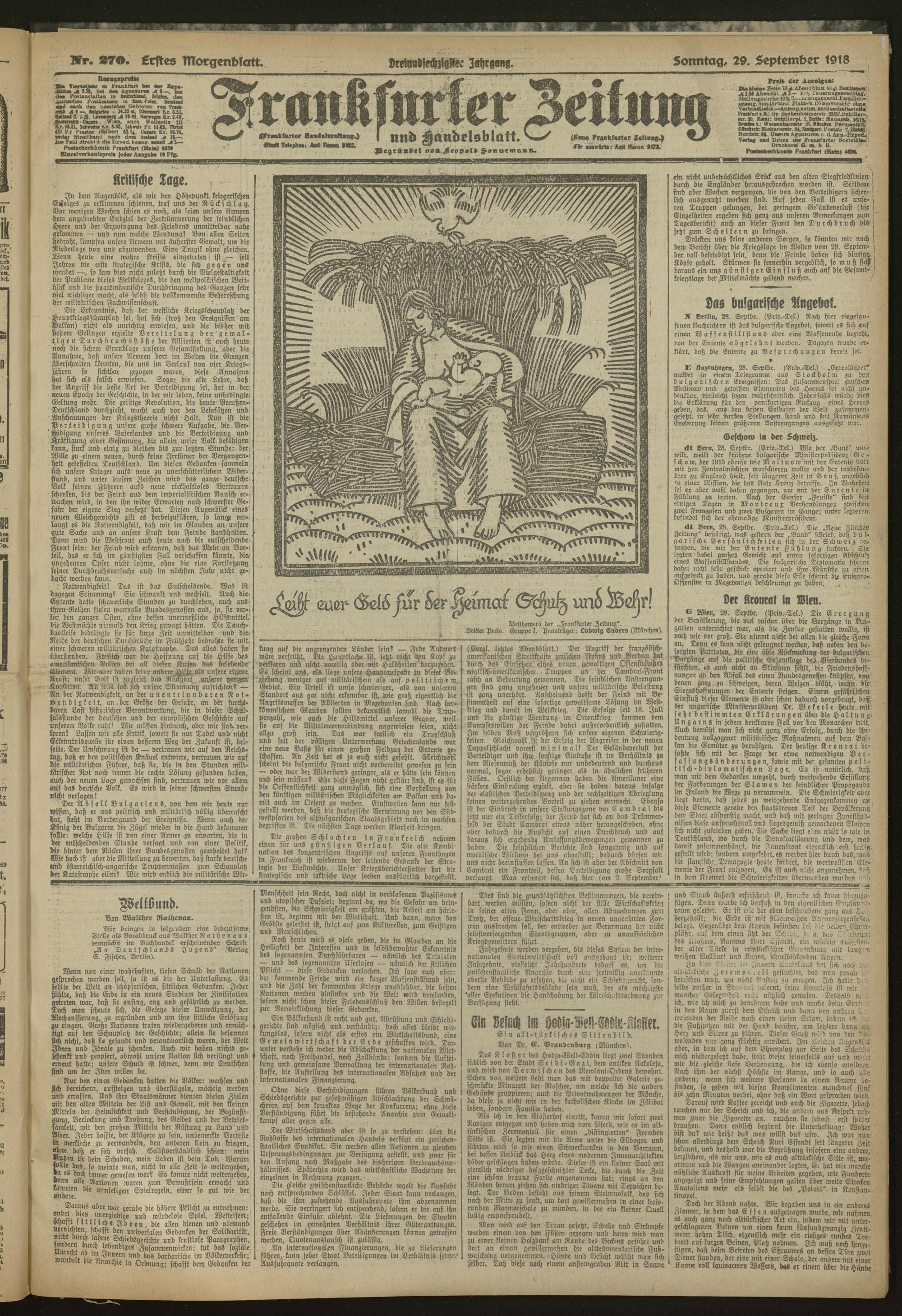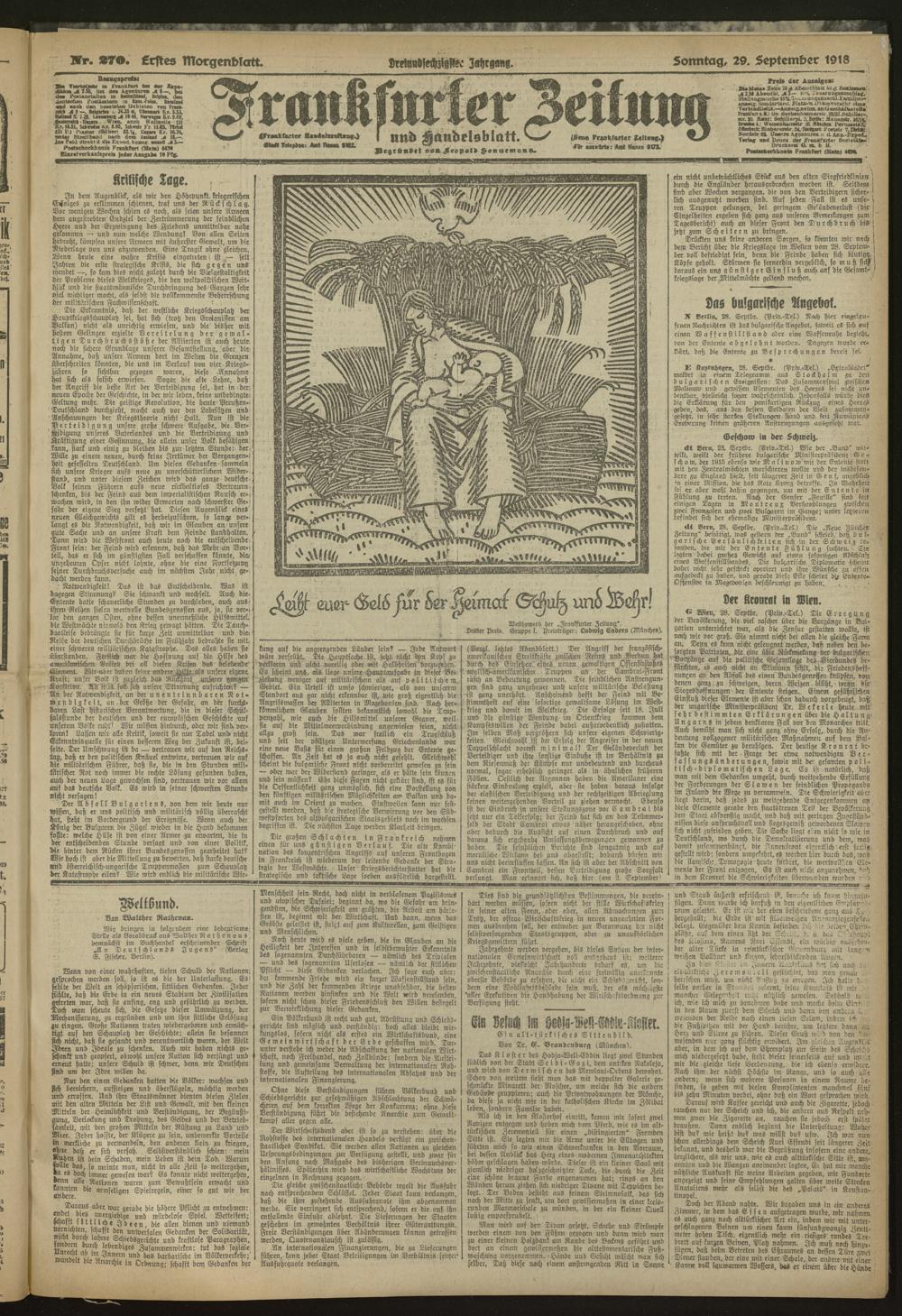 29.09.1918 = Nr. 270. Erstes Morgenblatt