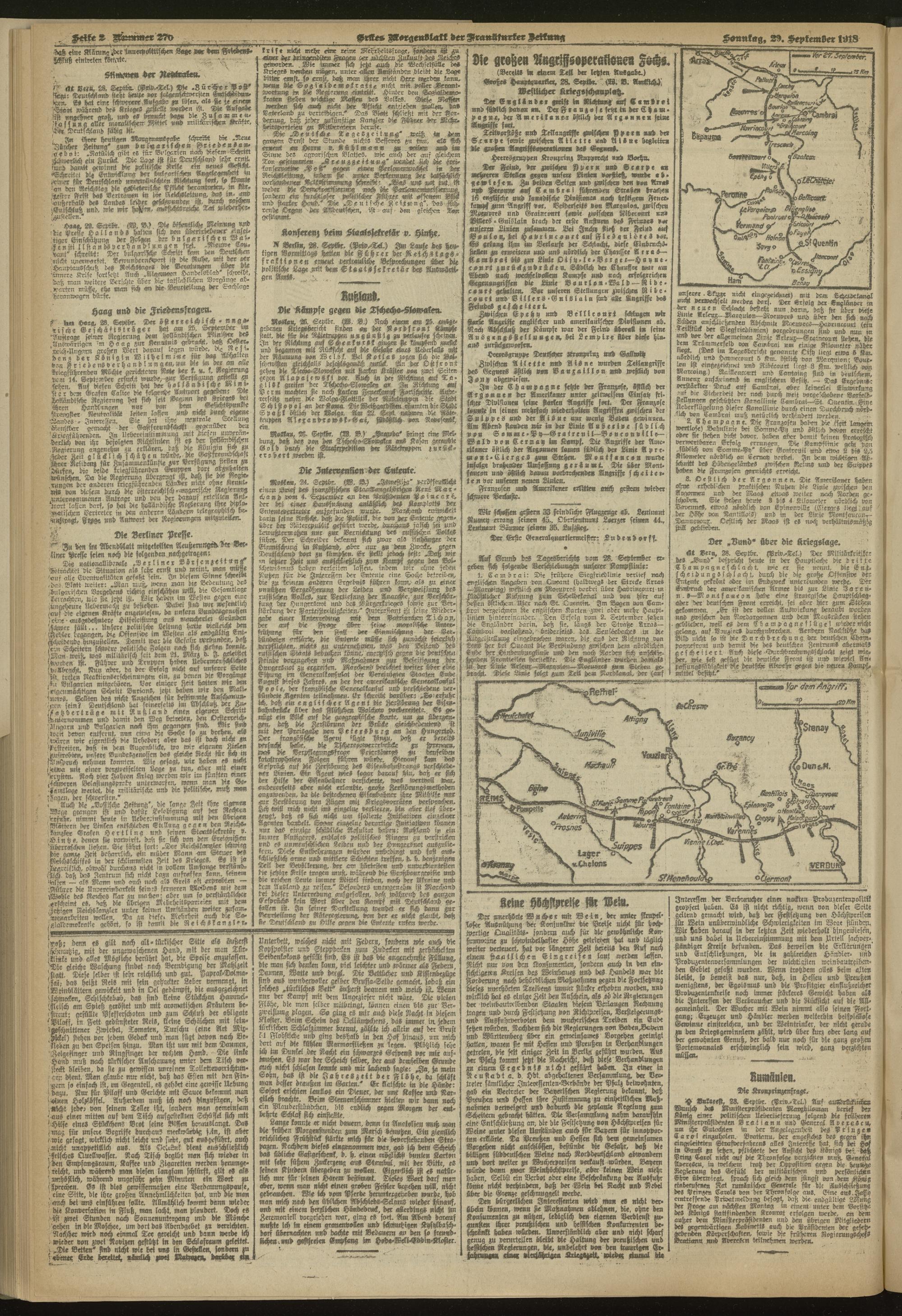 29.09.1918 = Nr. 270. Erstes Morgenblatt