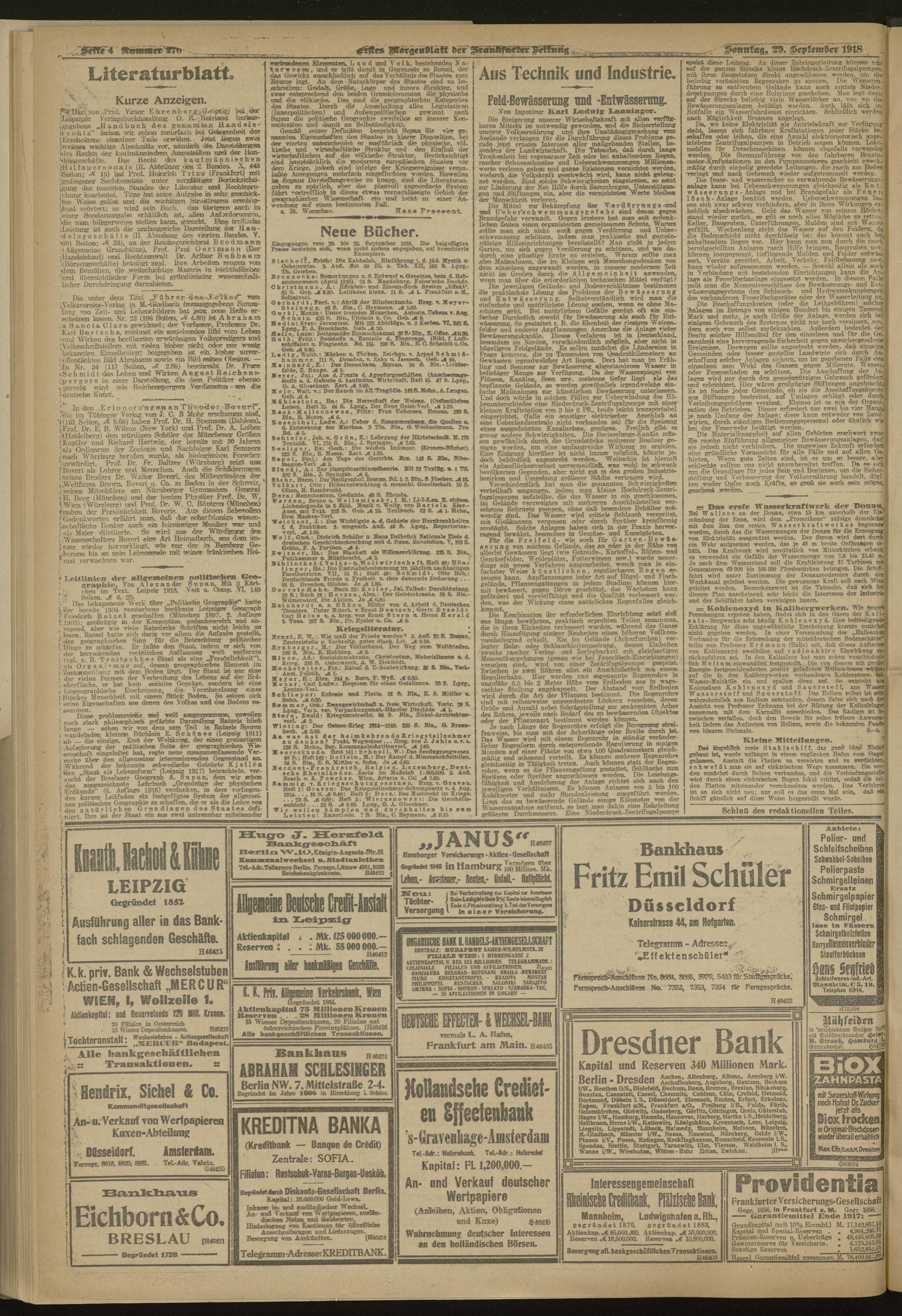 29.09.1918 = Nr. 270. Erstes Morgenblatt