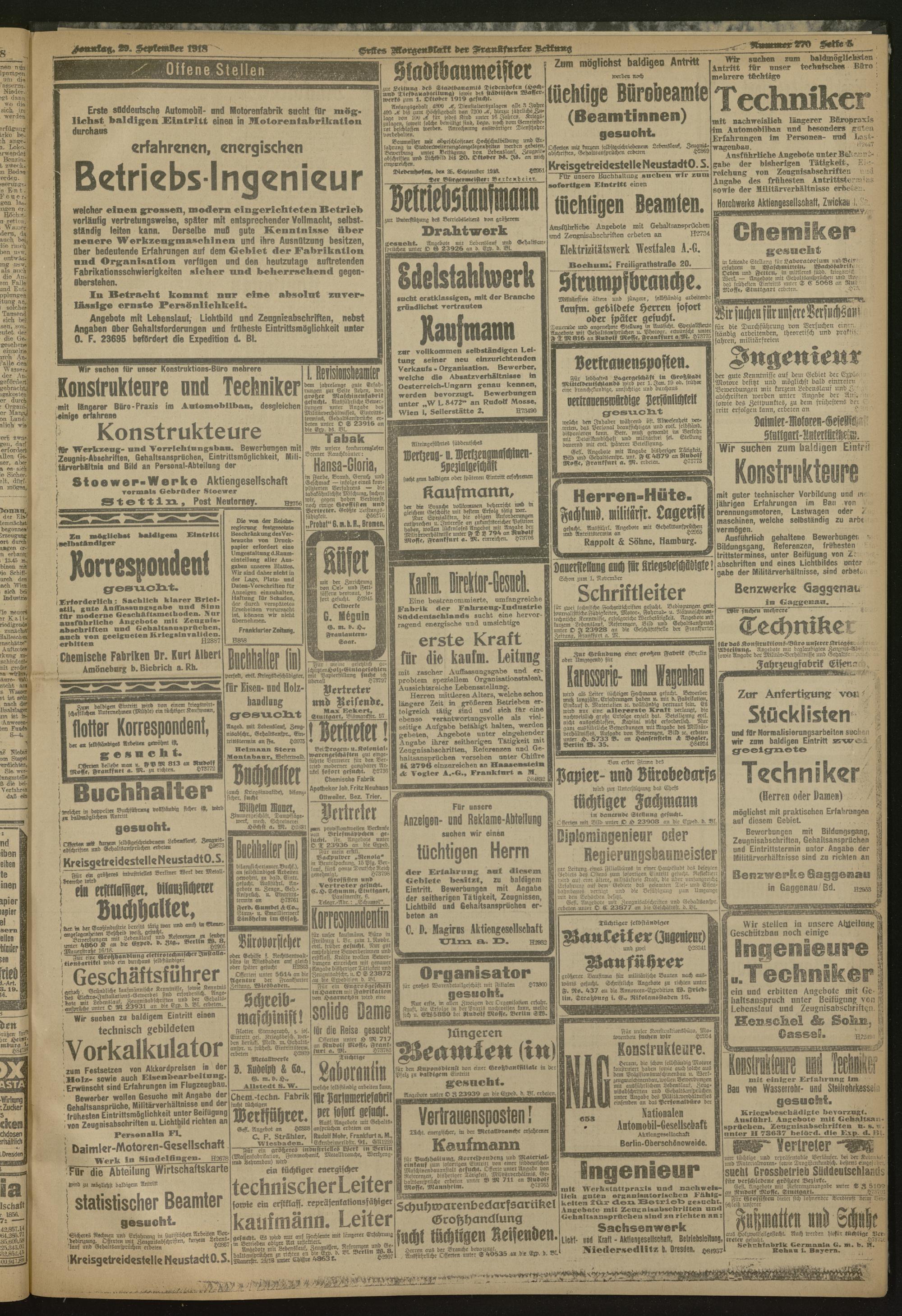 29.09.1918 = Nr. 270. Erstes Morgenblatt