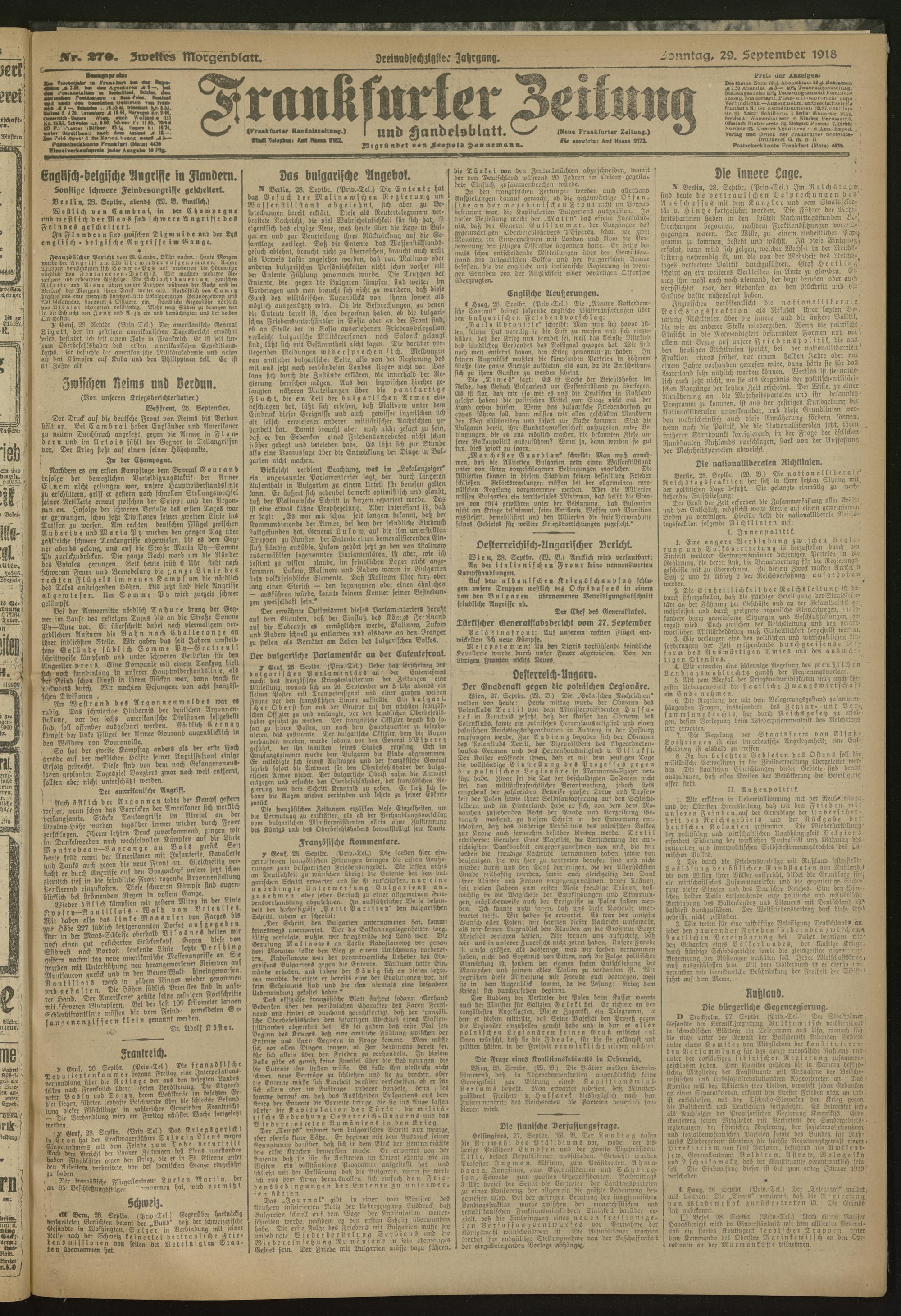 29.09.1918 = Nr. 270. Zweites Morgenblatt