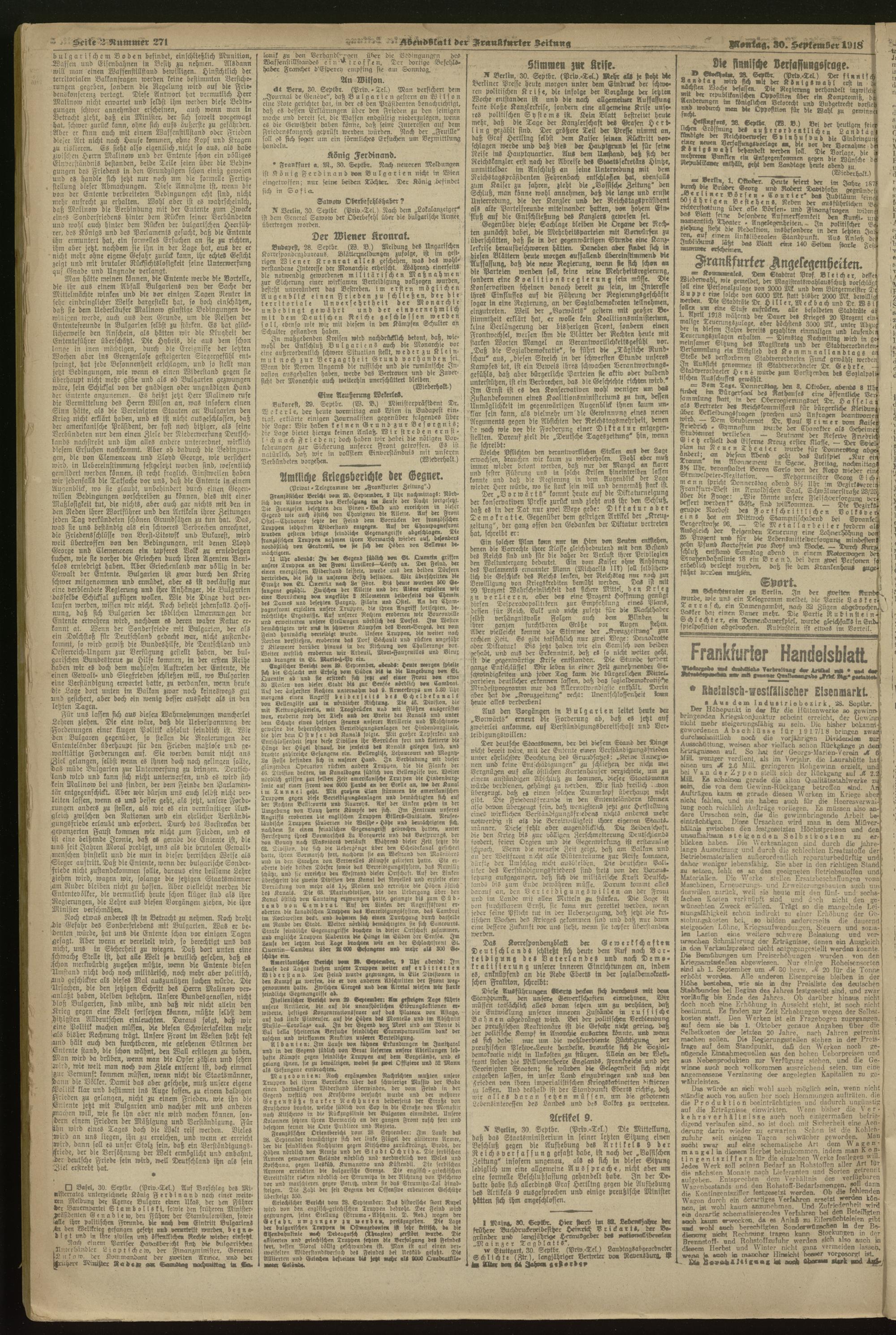 30.09.1918 = Nr. 271. Abendblatt