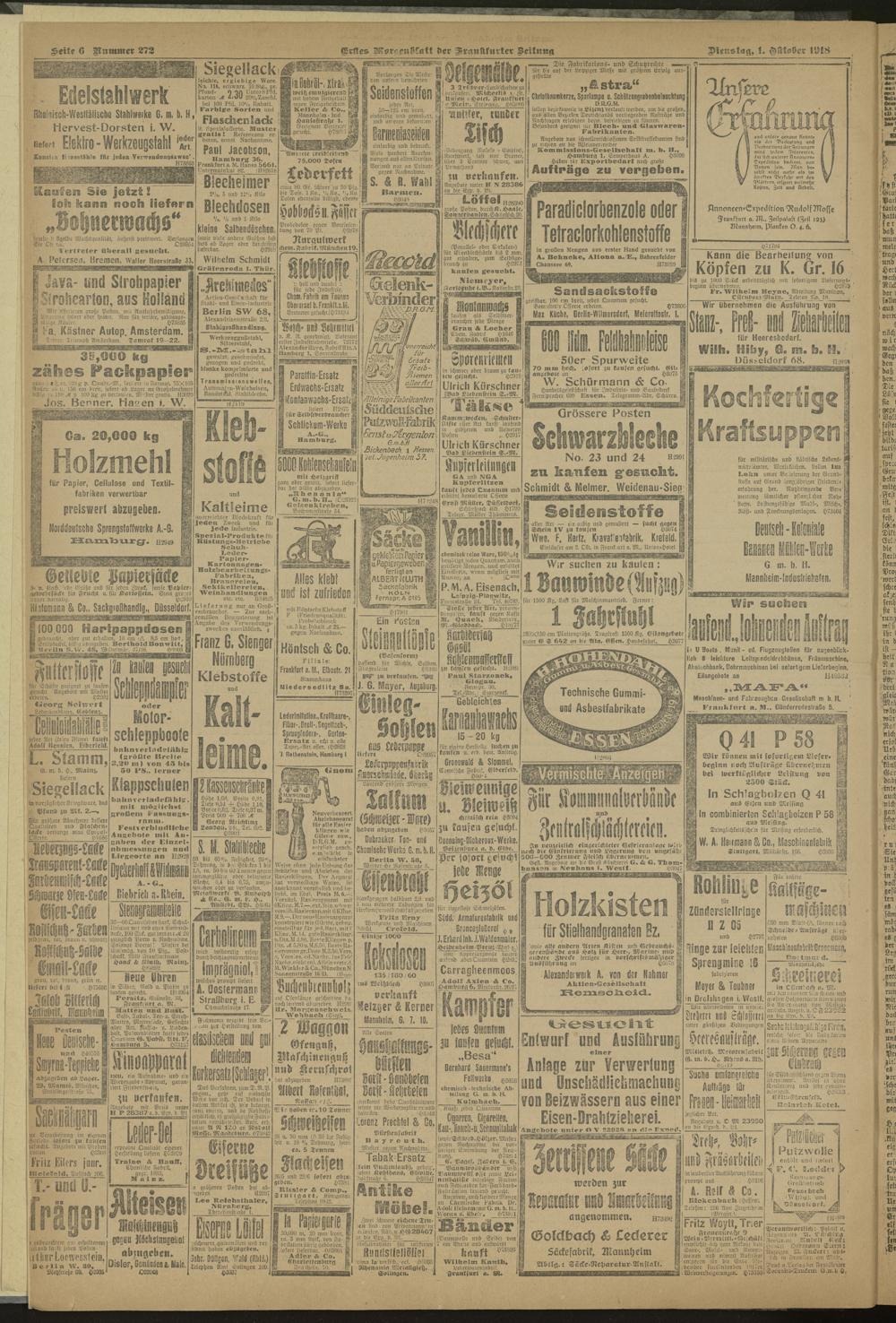 01.10.1918 = Nr. 272. Erstes Morgenblatt