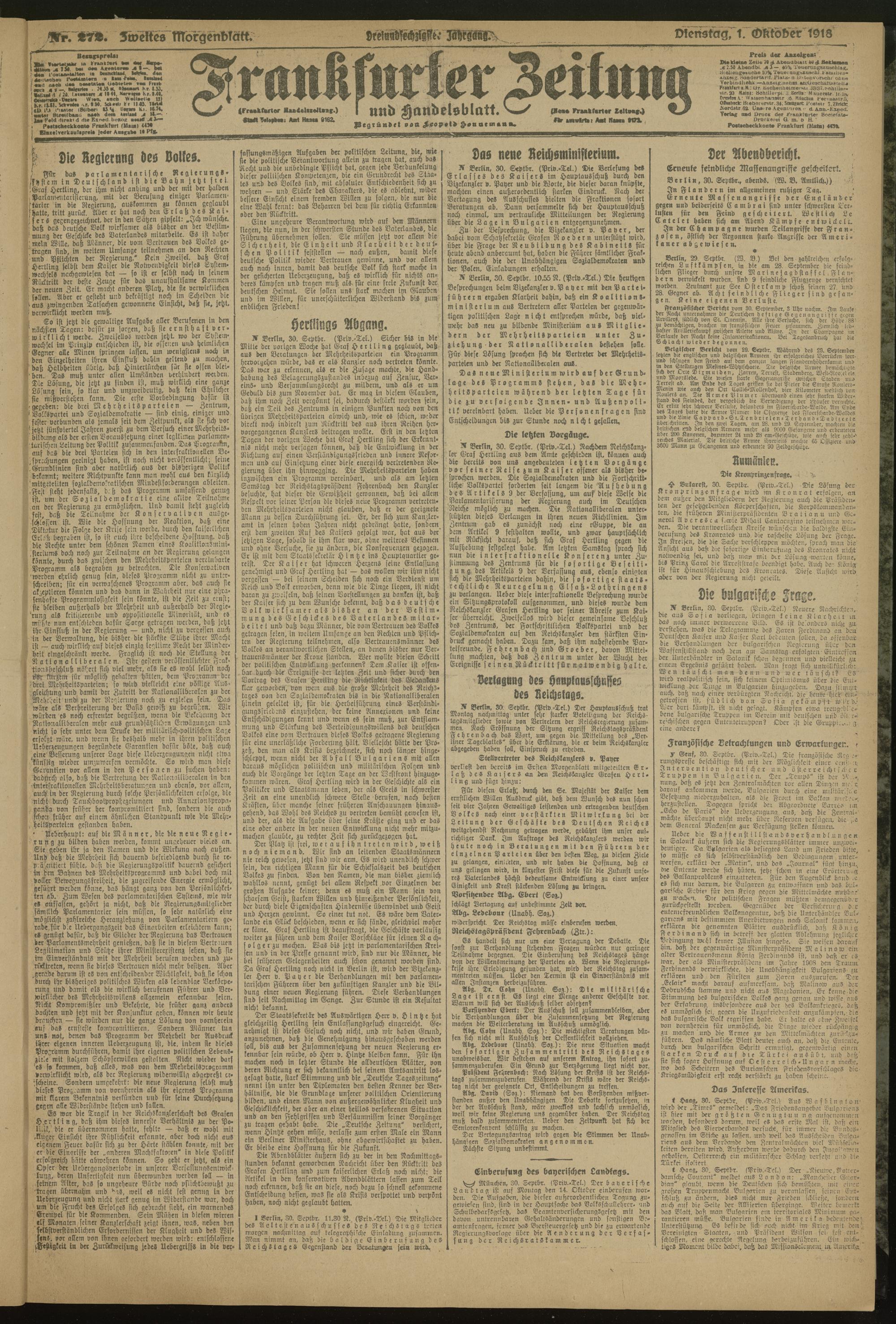 01.10.1918 = Nr. 272. Zweites Morgenblatt