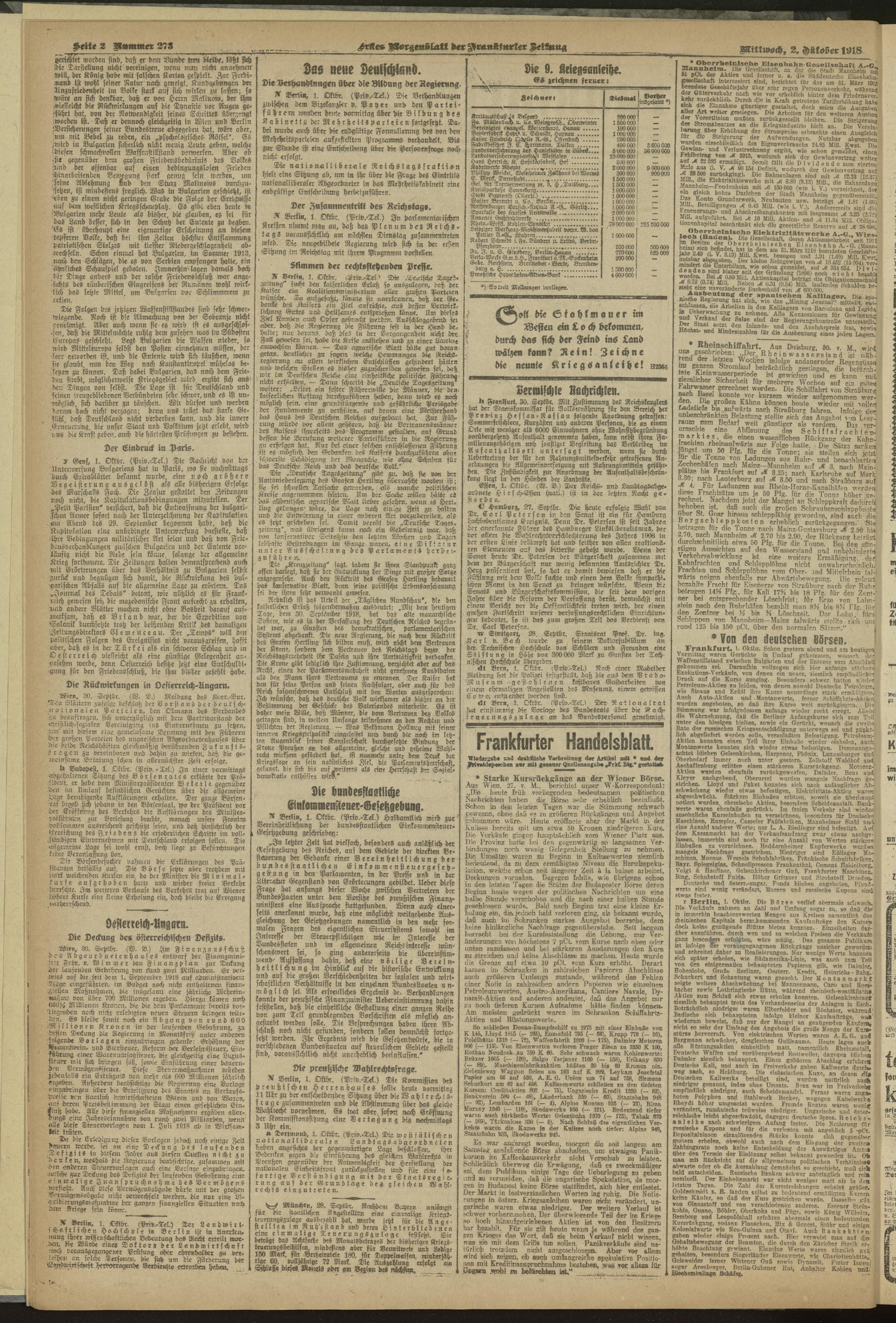 02.10.1918 = Nr. 273. Erstes Morgenblatt