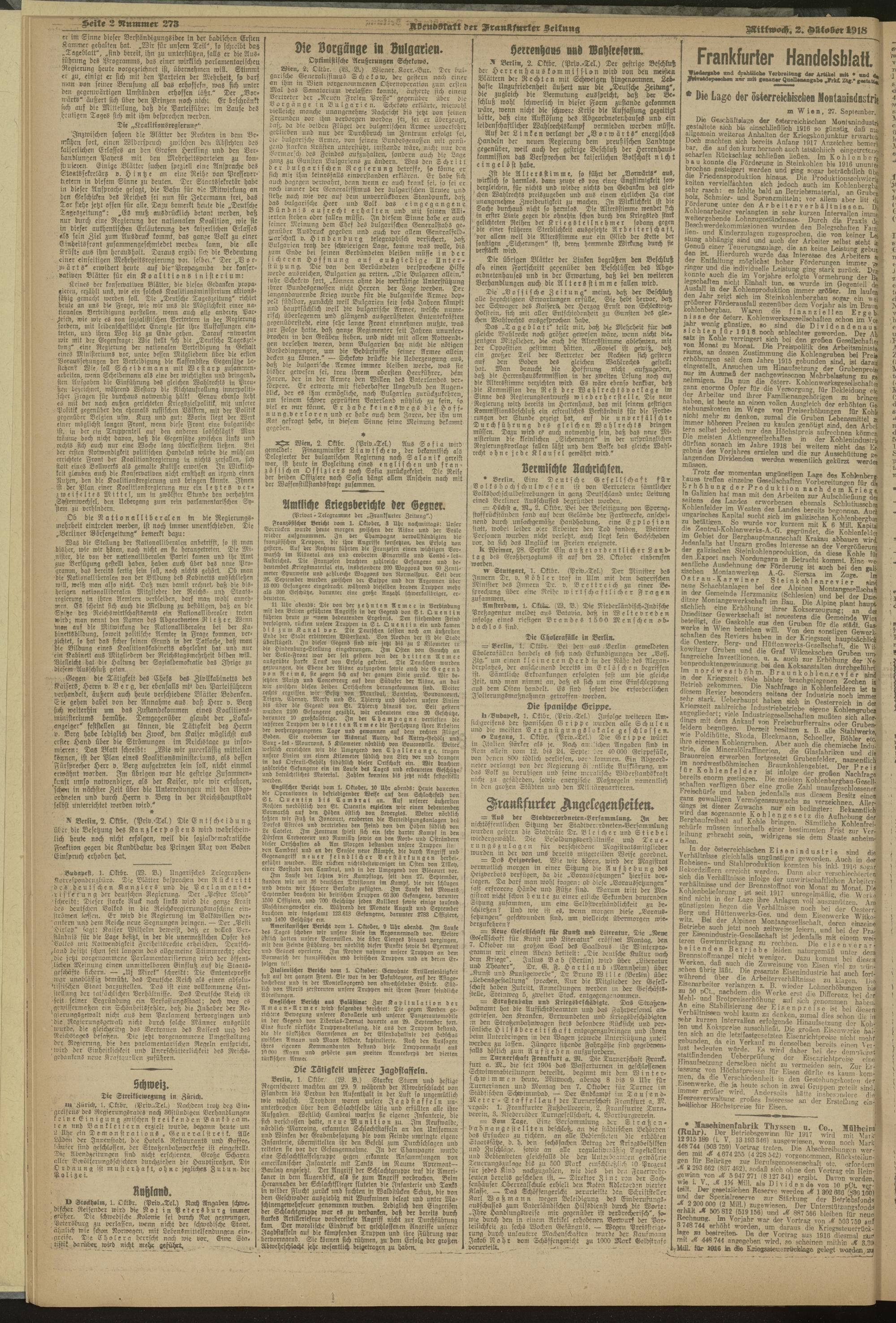 02.10.1918 = Nr. 273. Abendblatt