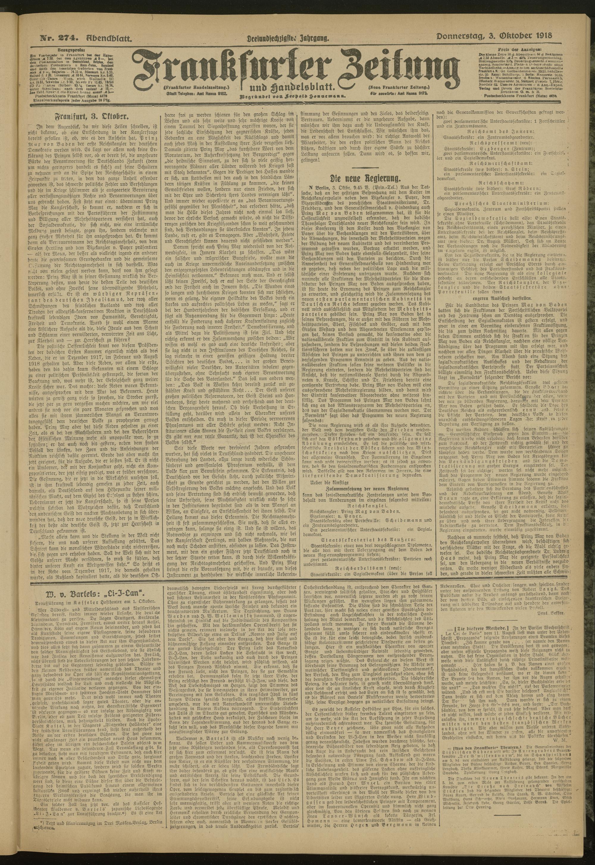 03.10.1918 = Nr. 274. Abendblatt