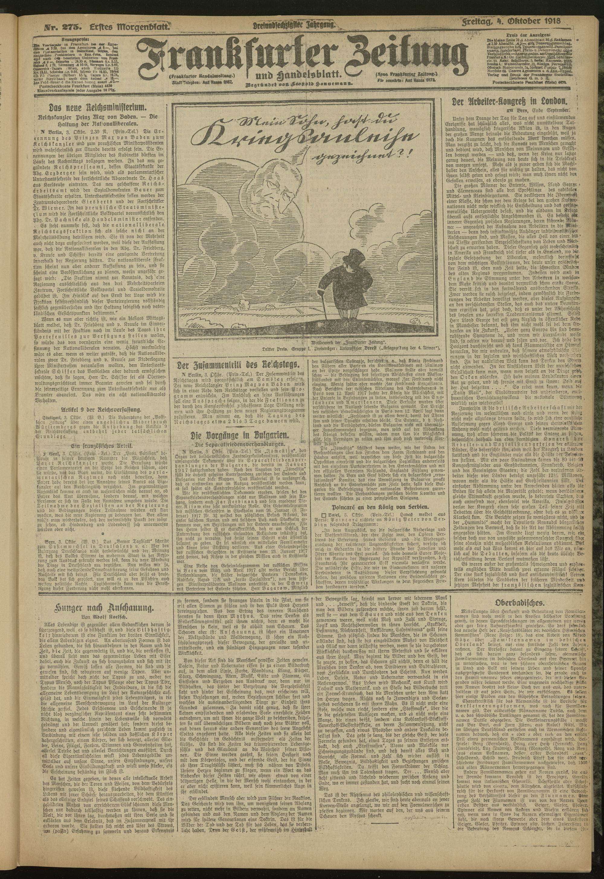 04.10.1918 = Nr. 275. Erstes Morgenblatt
