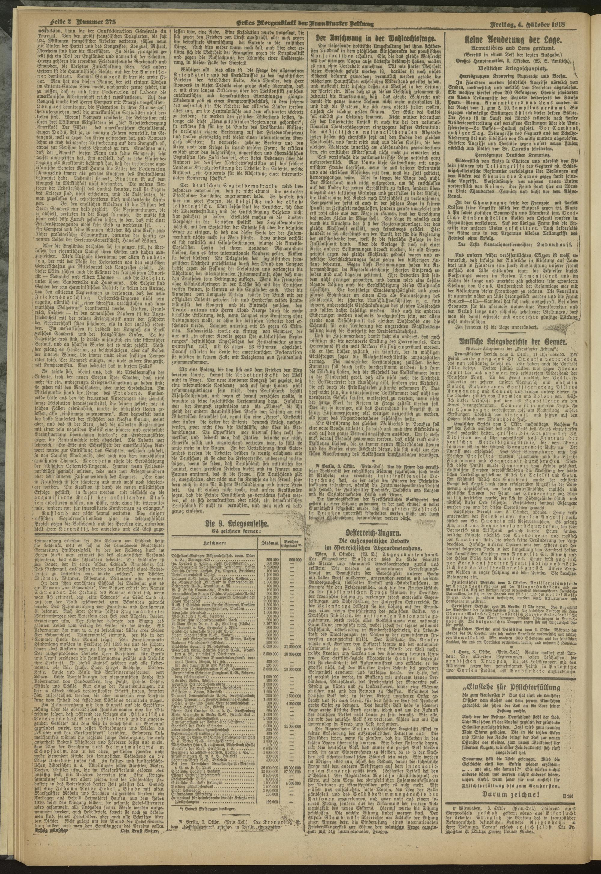04.10.1918 = Nr. 275. Erstes Morgenblatt