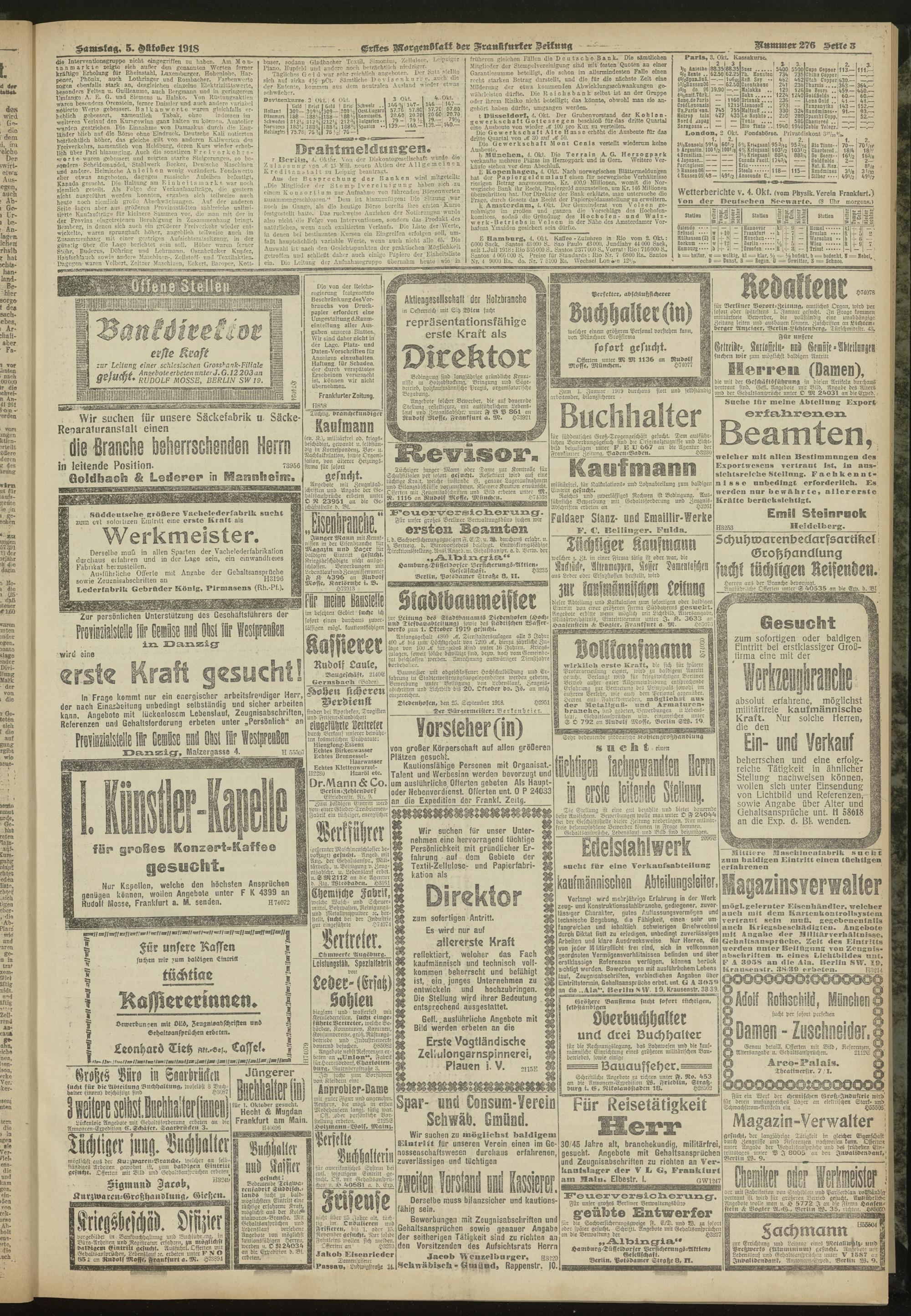 05.10.1918 = Nr. 276. Erstes Morgenblatt