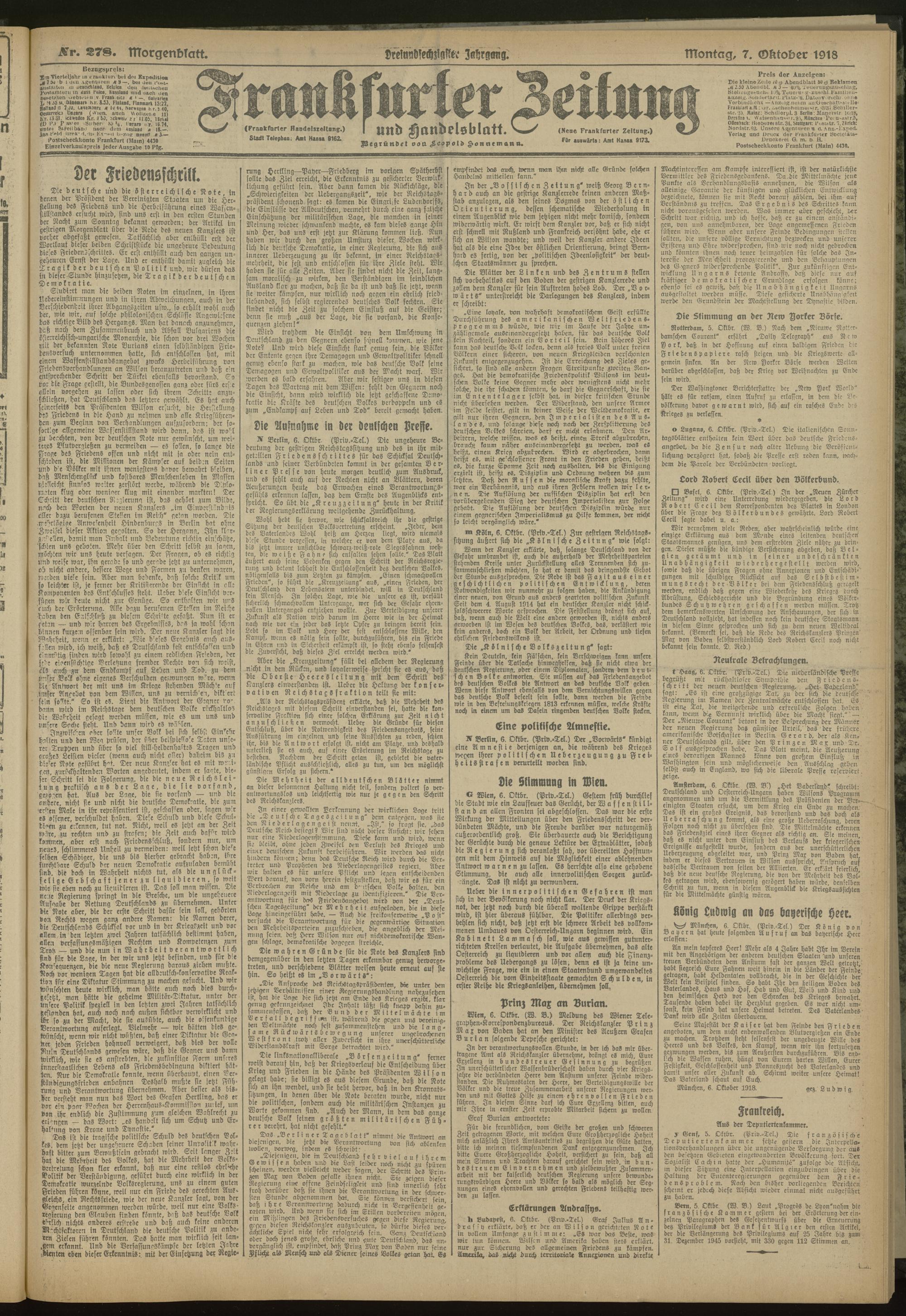 07.10.1918 = Nr. 278. Morgenblatt