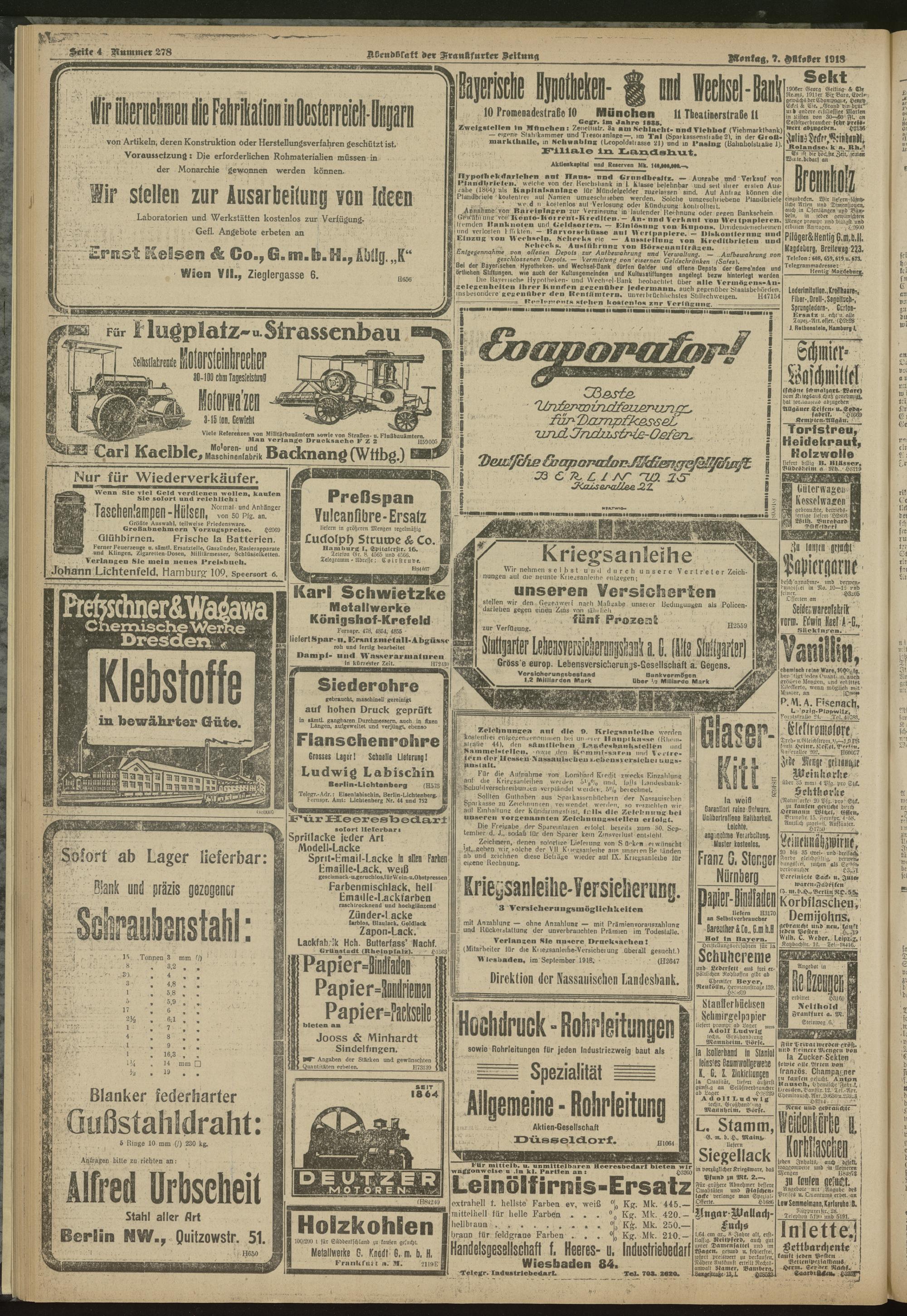 07.10.1918 = Nr. 278. Abendblatt