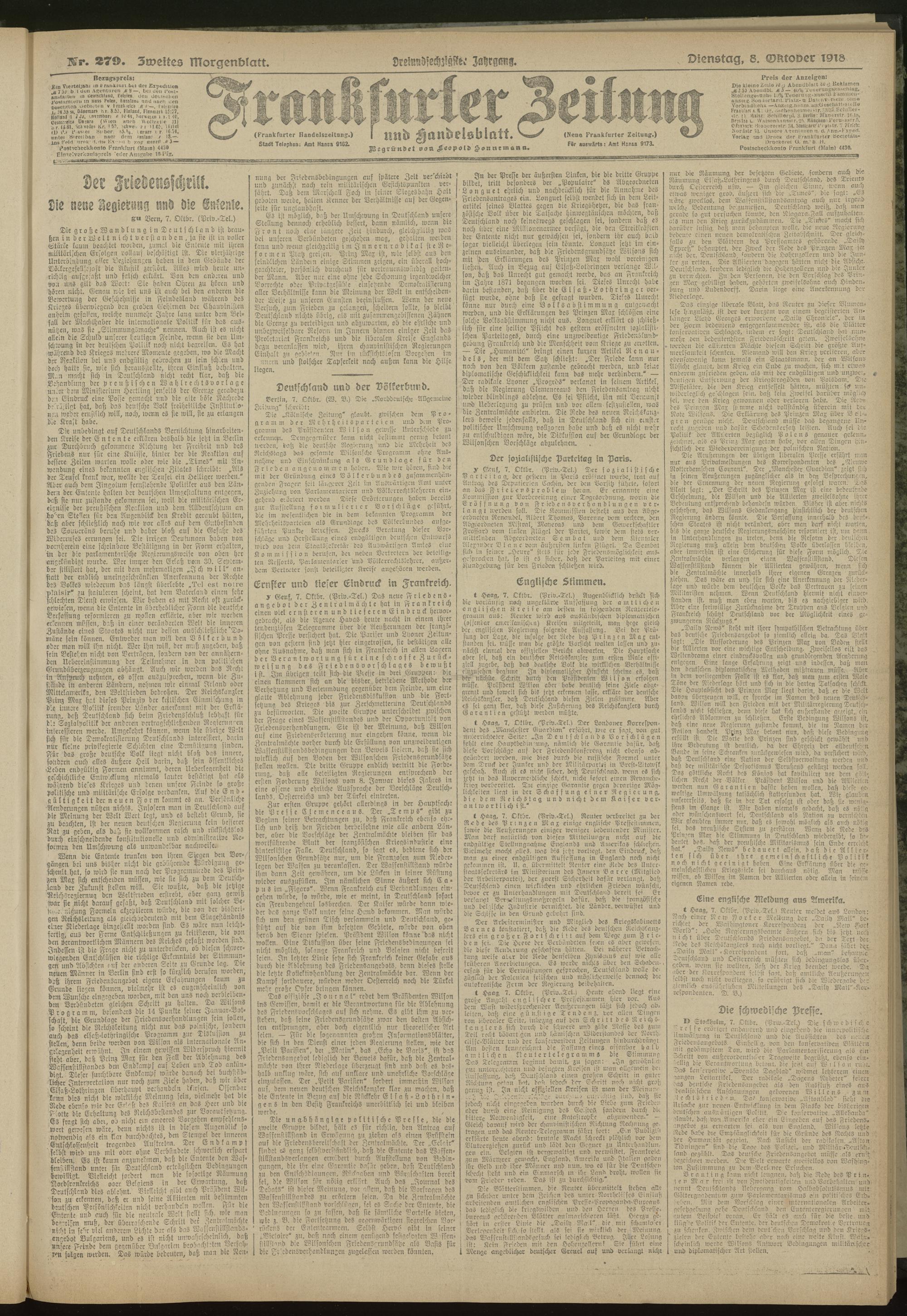 08.10.1918 = Nr. 279. Zweites Morgenblatt