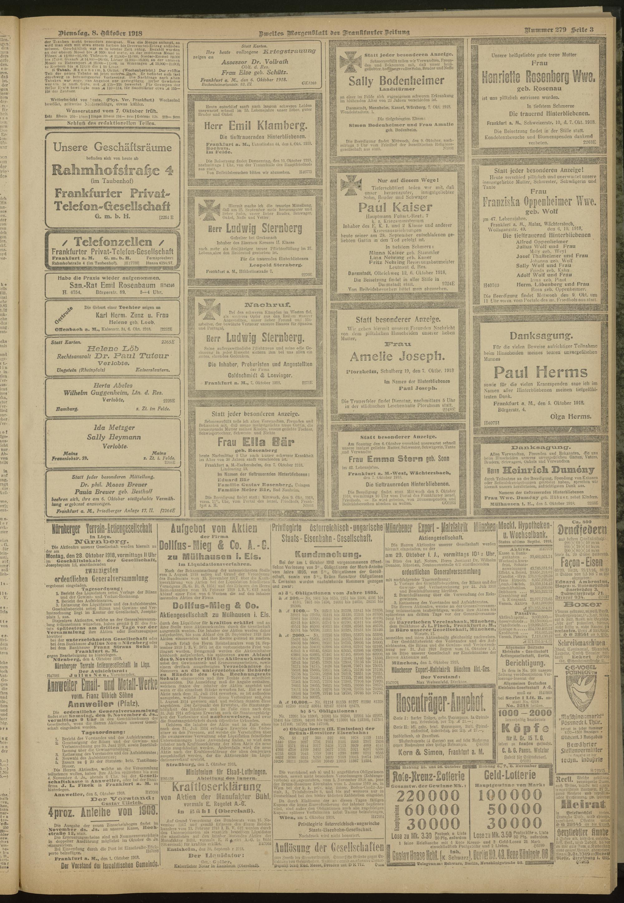 08.10.1918 = Nr. 279. Zweites Morgenblatt