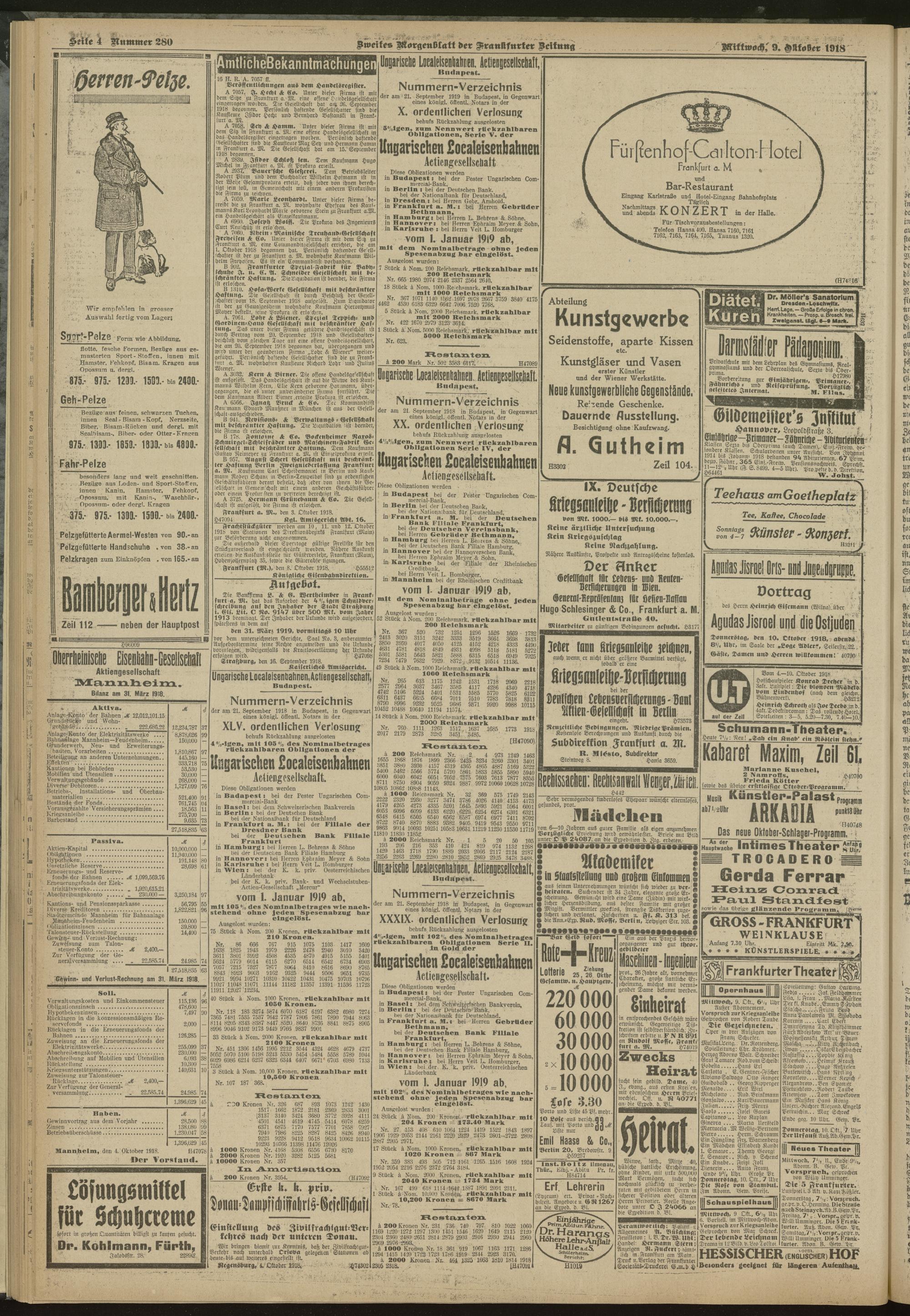 09.10.1918 = Nr. 280. Zweites Morgenblatt