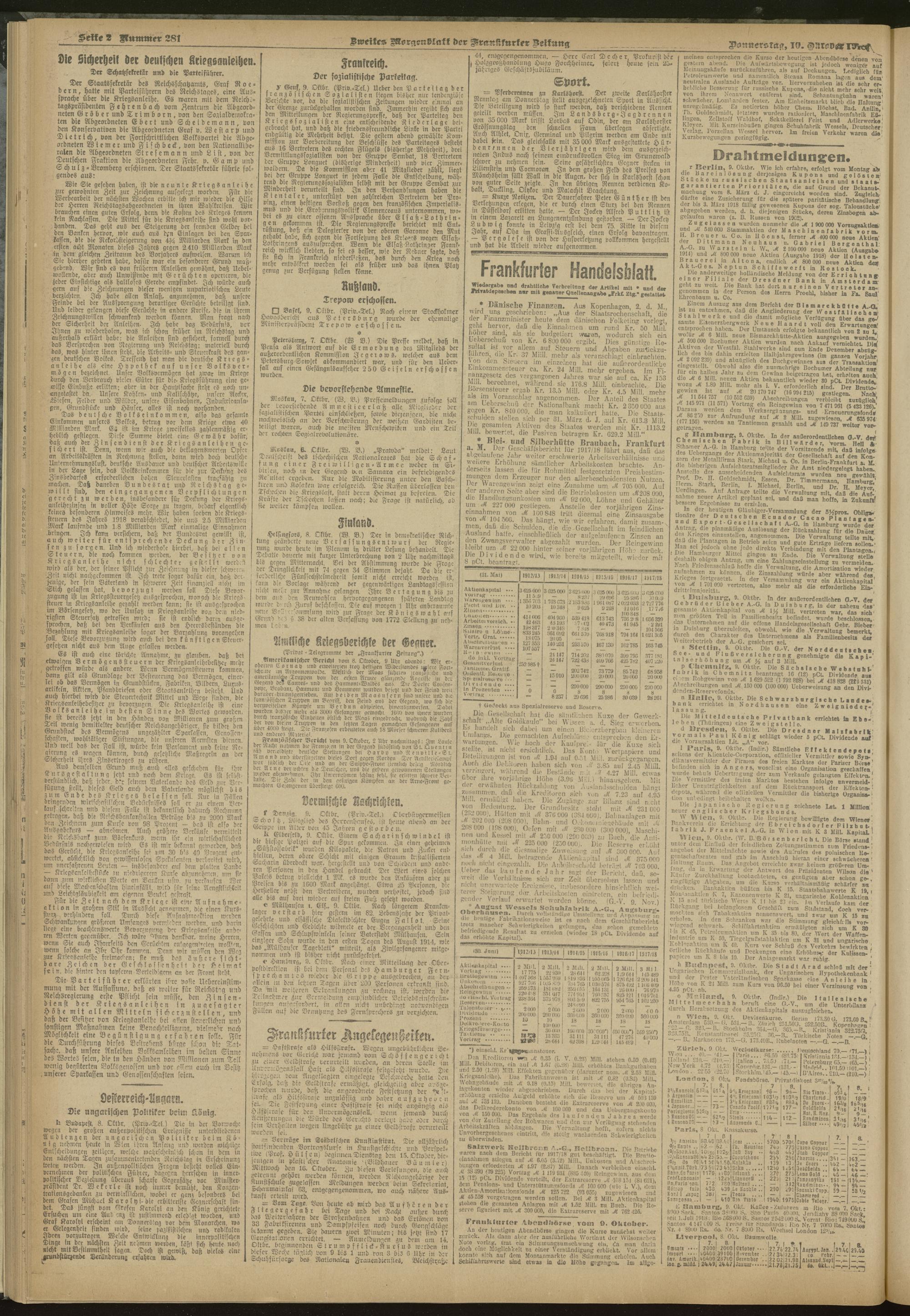 10.10.1918 = Nr. 281. Zweites Morgenblatt