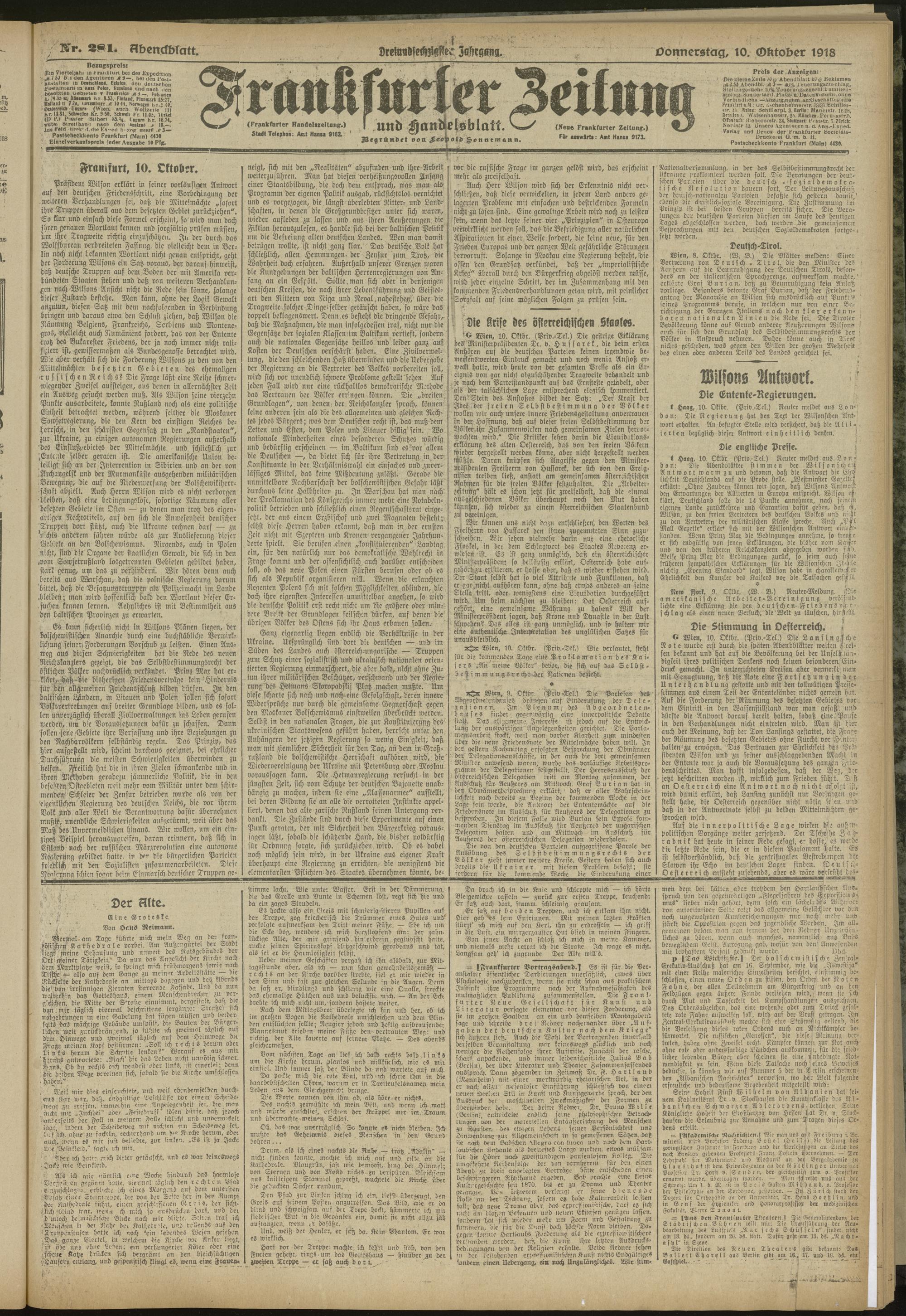 10.10.1918 = Nr. 281. Abendblatt