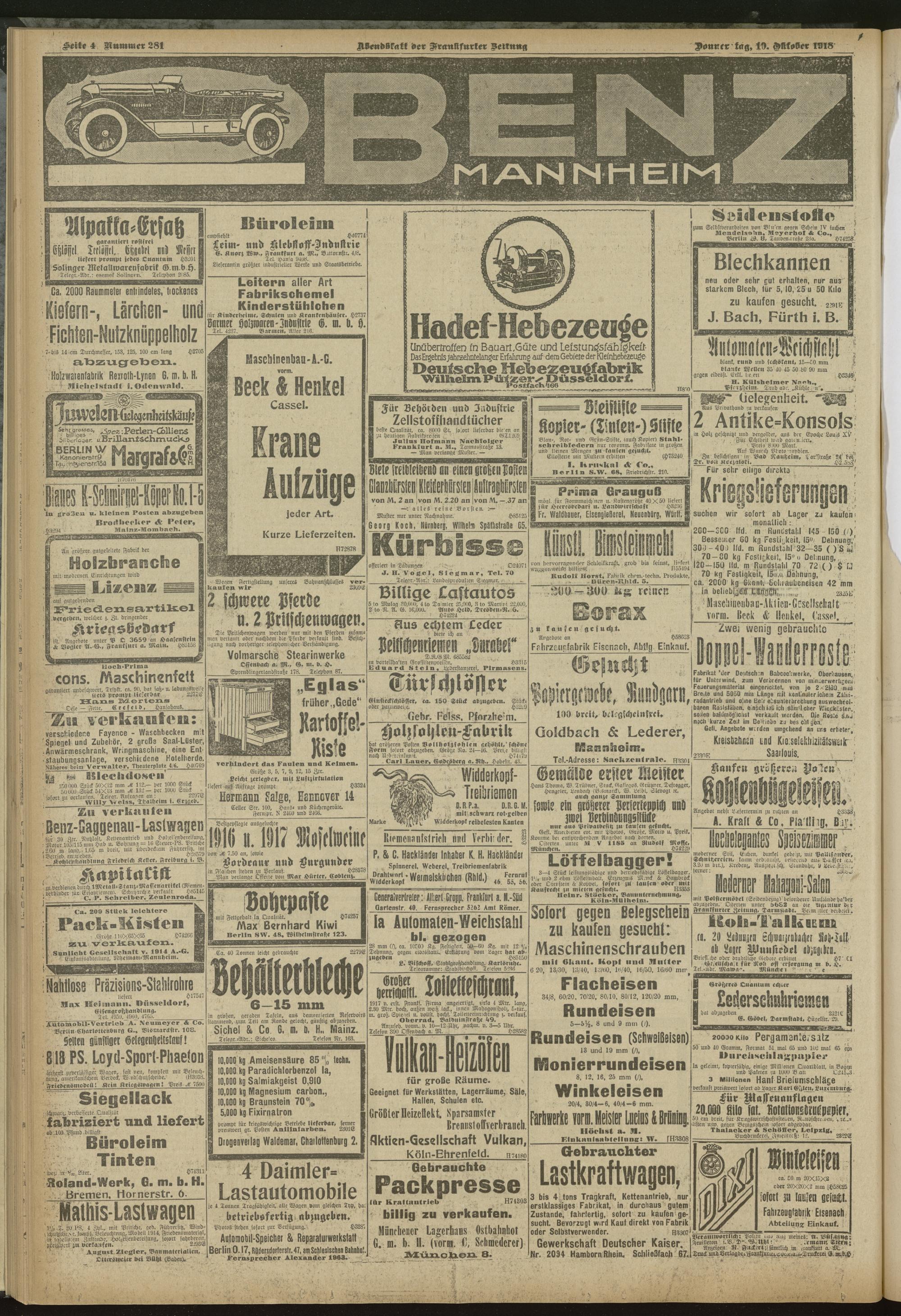 10.10.1918 = Nr. 281. Abendblatt