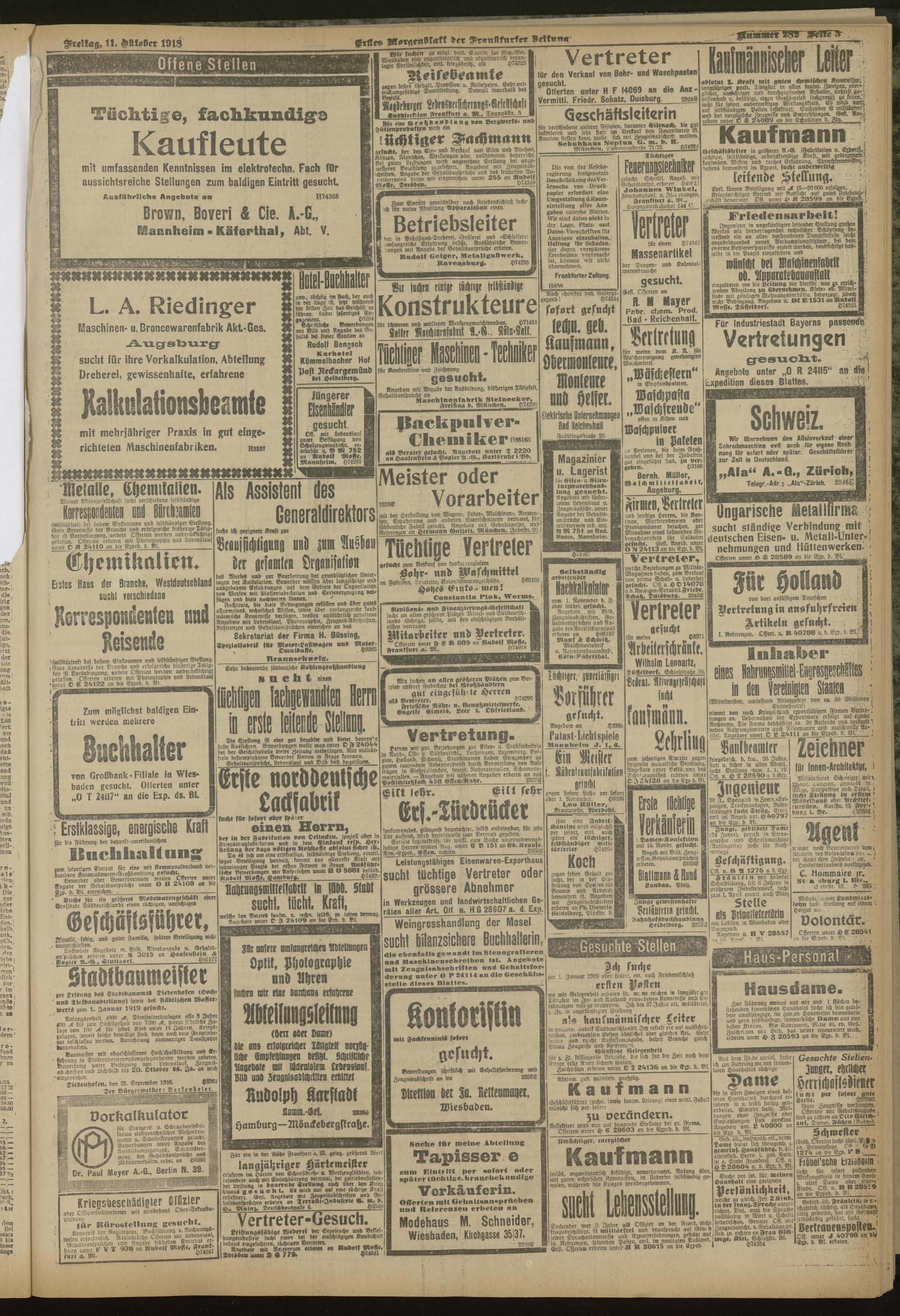 11.10.1918 = Nr. 282. Erstes Morgenblatt