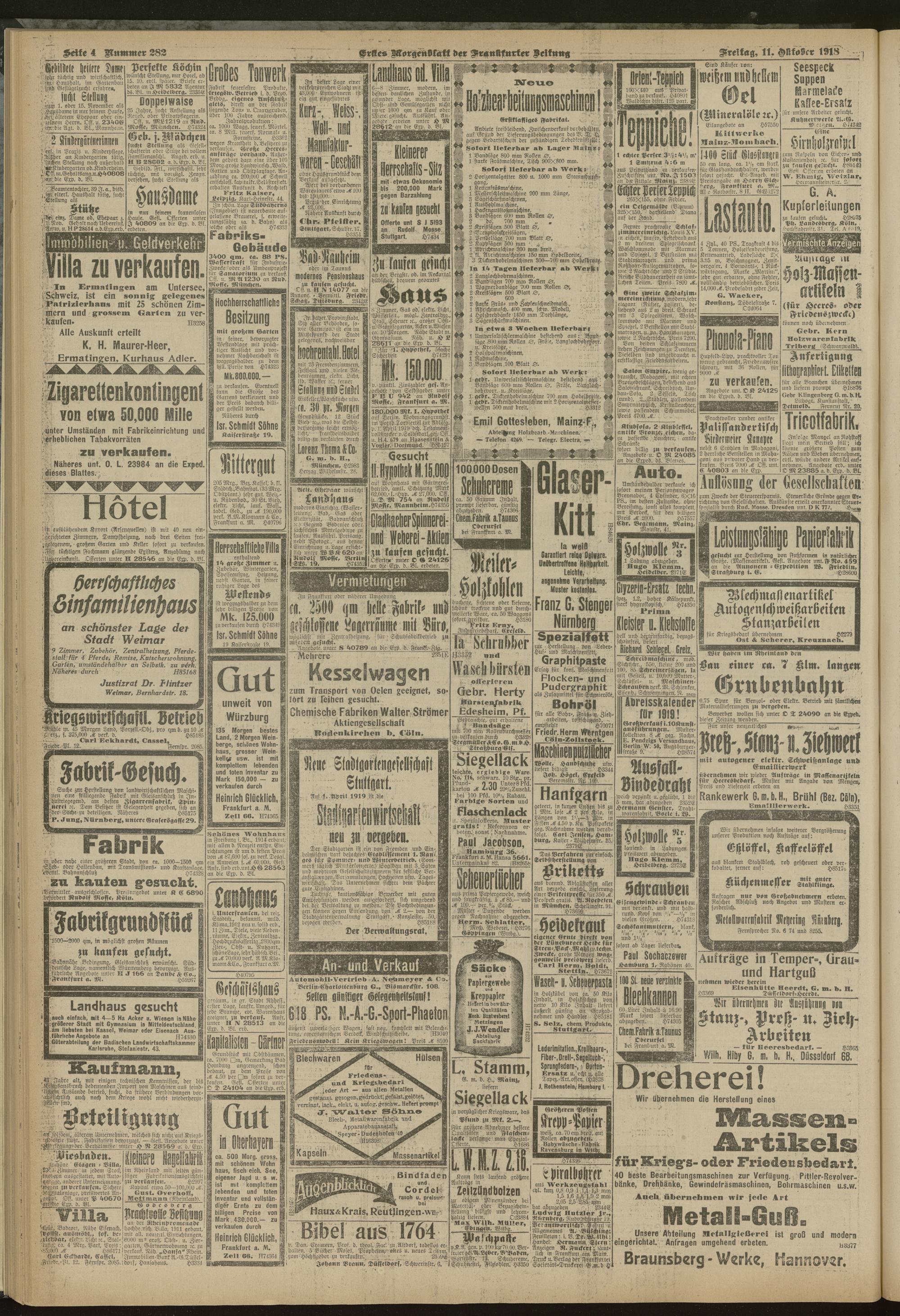 11.10.1918 = Nr. 282. Erstes Morgenblatt
