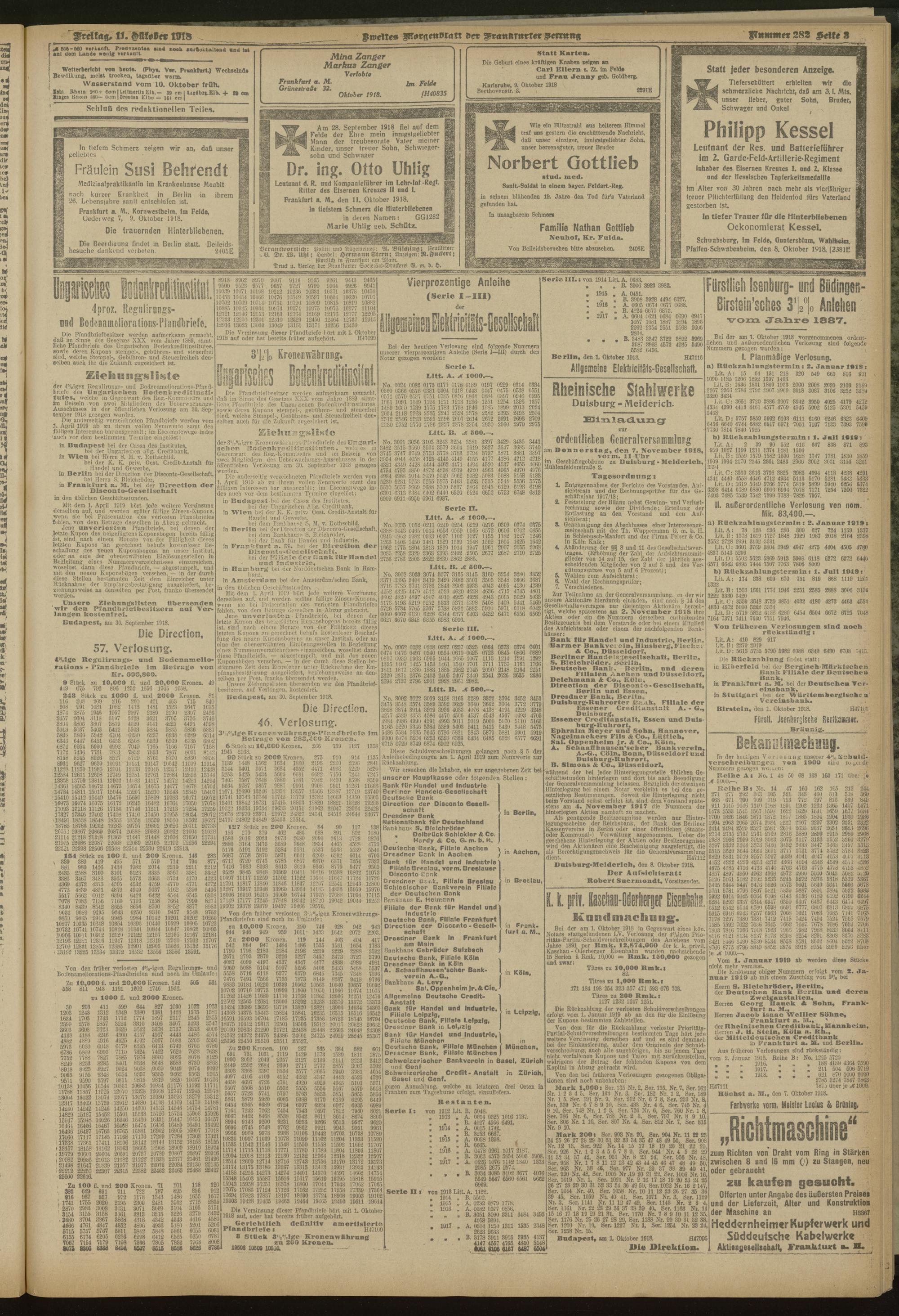 11.10.1918 = Nr. 282. Zweites Morgenblatt