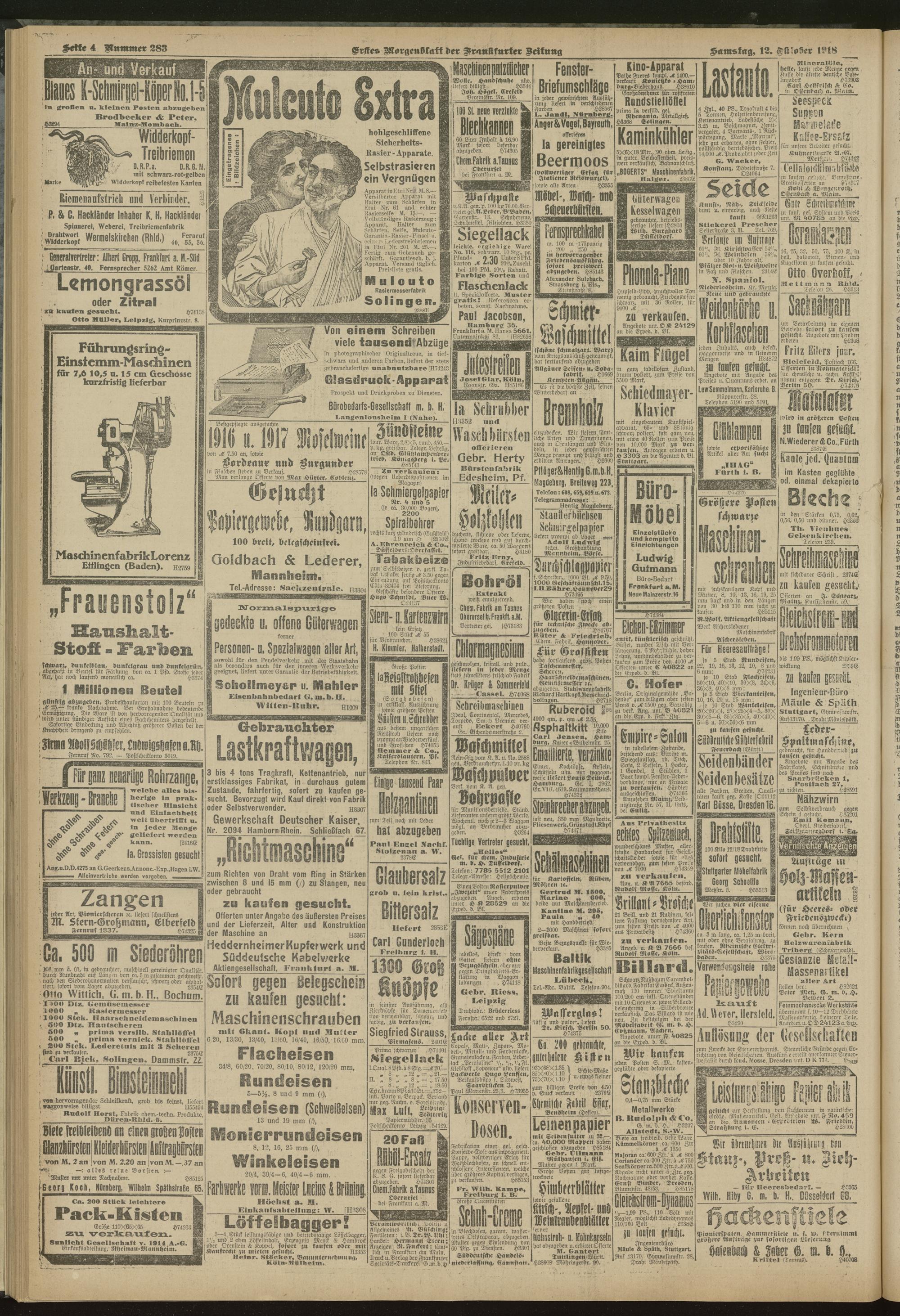 12.10.1918 = Nr. 283. Erstes Morgenblatt