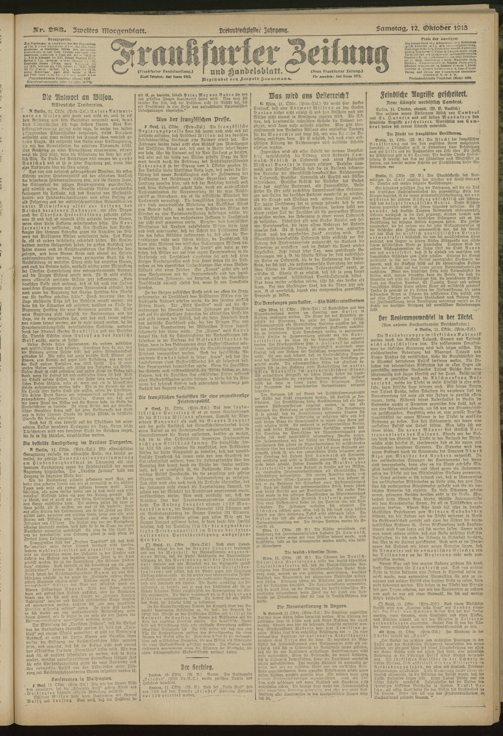 12.10.1918 = Nr. 283. Zweites Morgenblatt