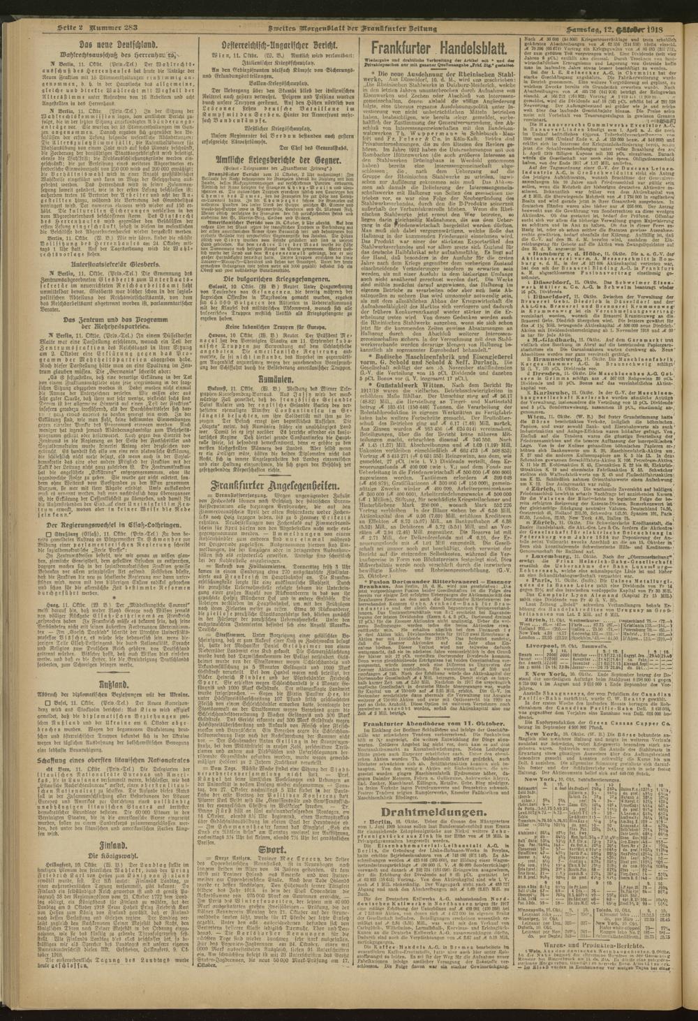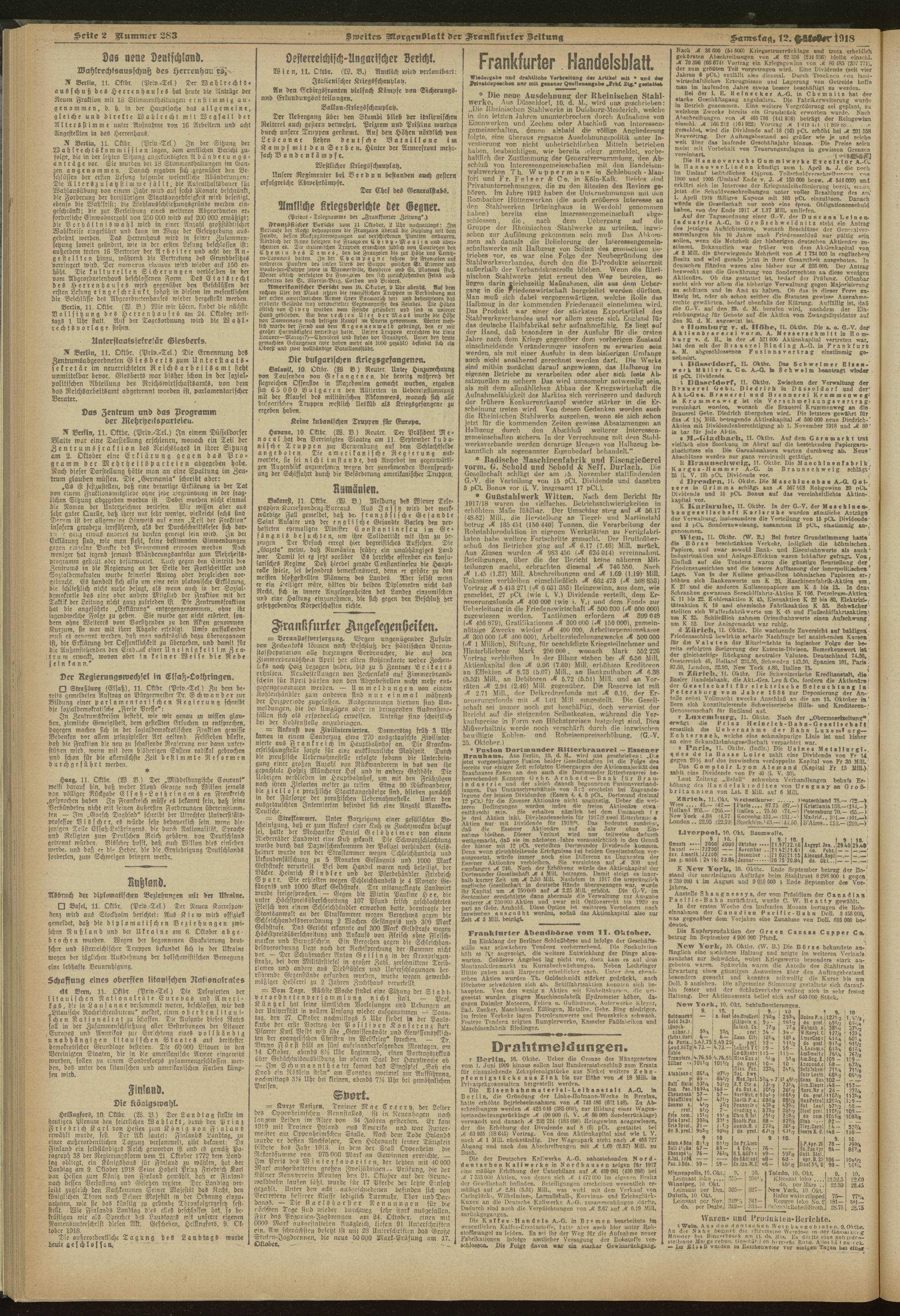 12.10.1918 = Nr. 283. Zweites Morgenblatt