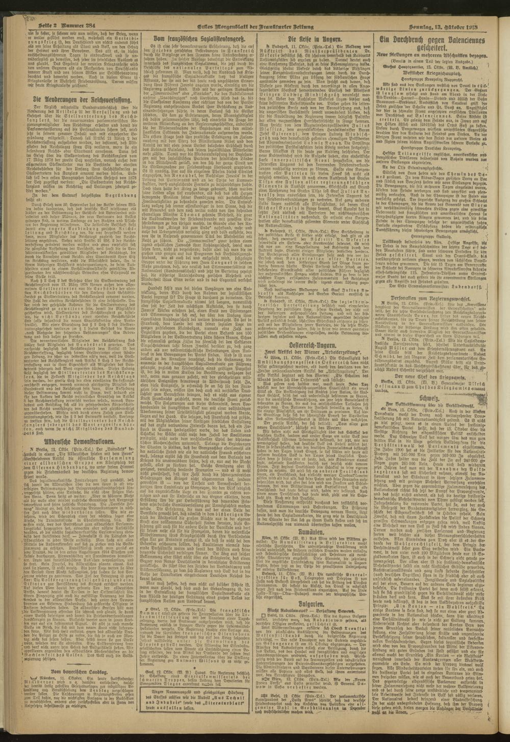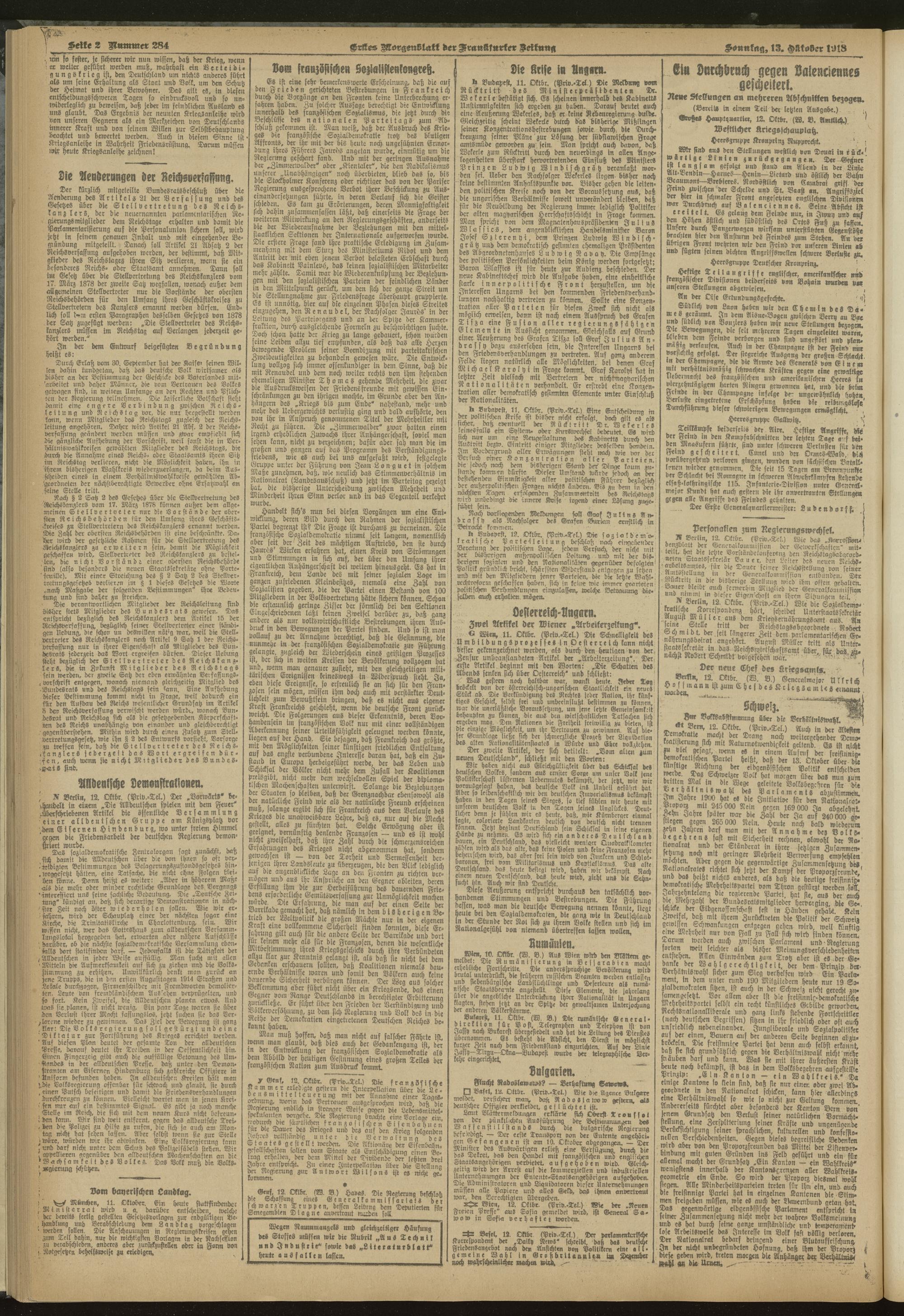13.10.1918 = Nr. 284. Erstes Morgenblatt