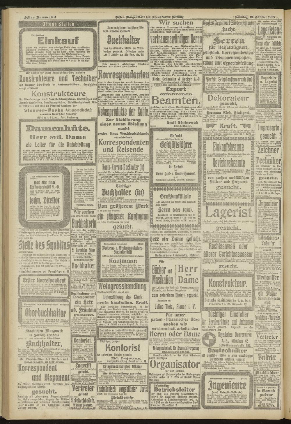 13.10.1918 = Nr. 284. Erstes Morgenblatt