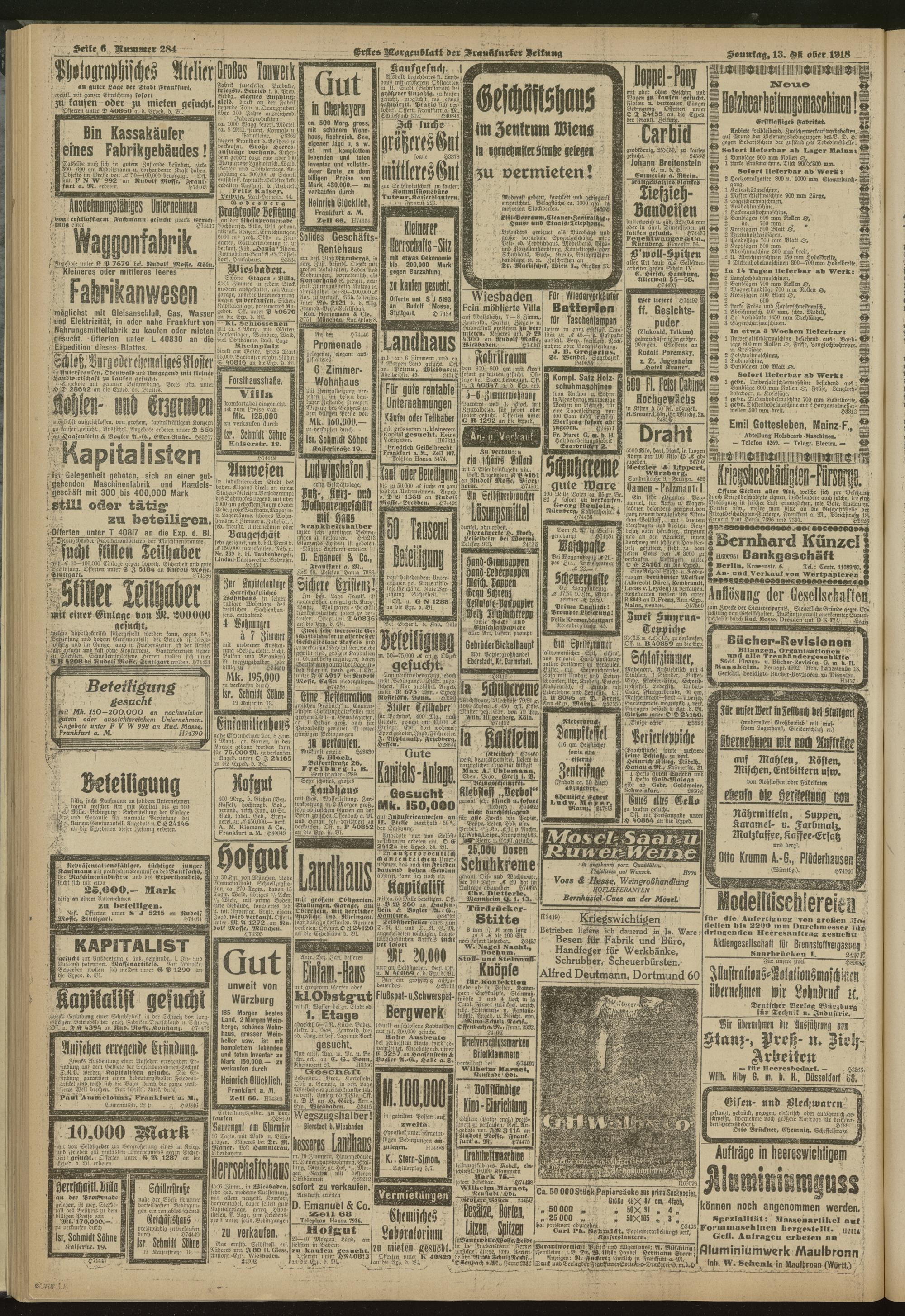 13.10.1918 = Nr. 284. Erstes Morgenblatt