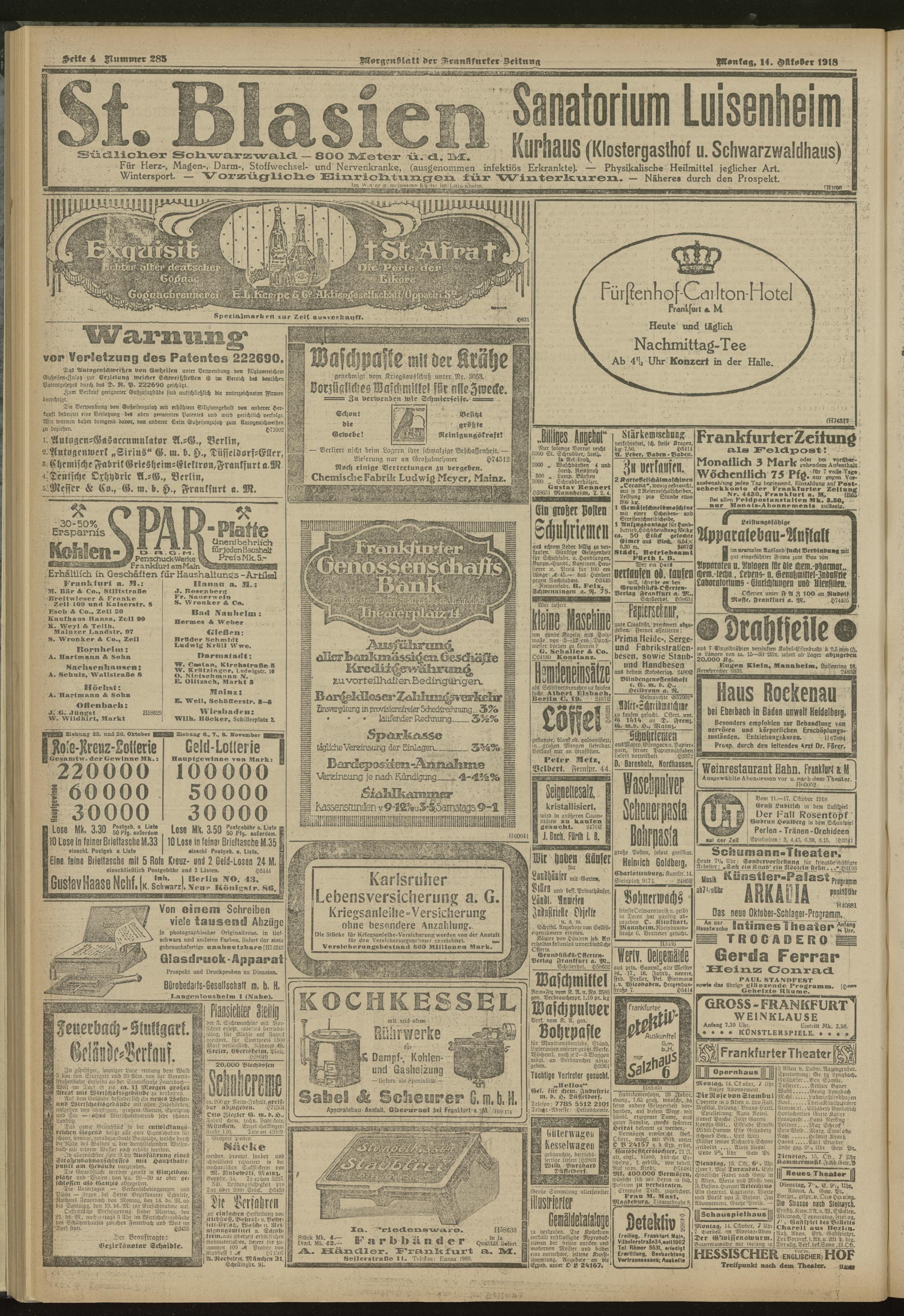 14.10.1918 = Nr. 285. Morgenblatt