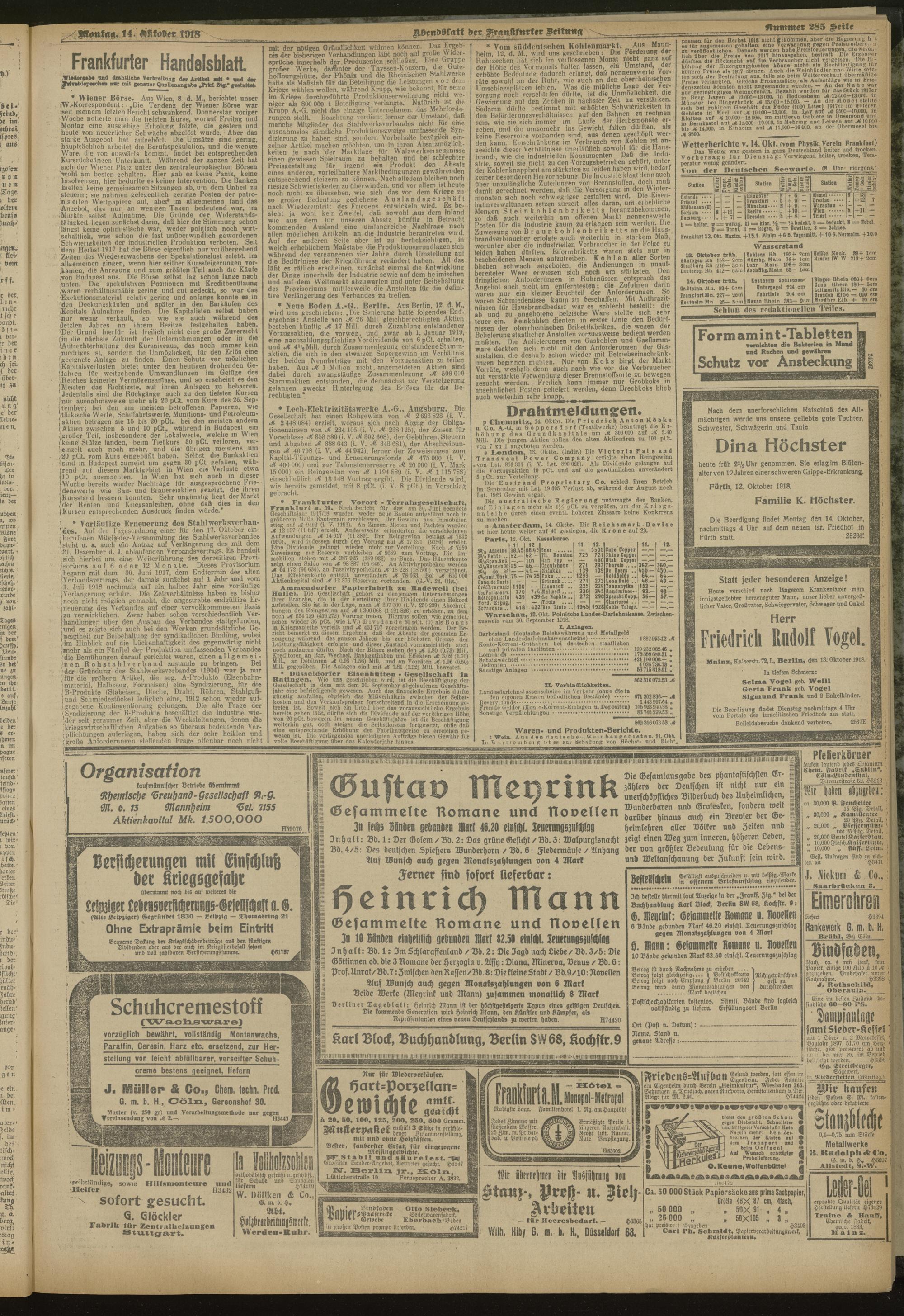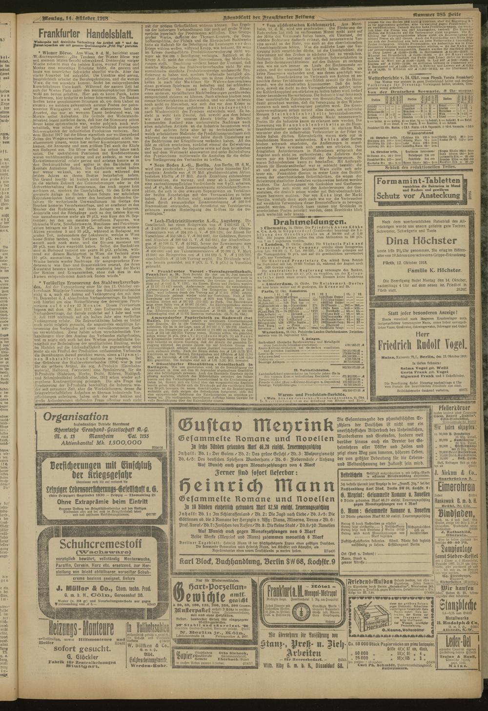 14.10.1918 = Nr. 285. Abendblatt