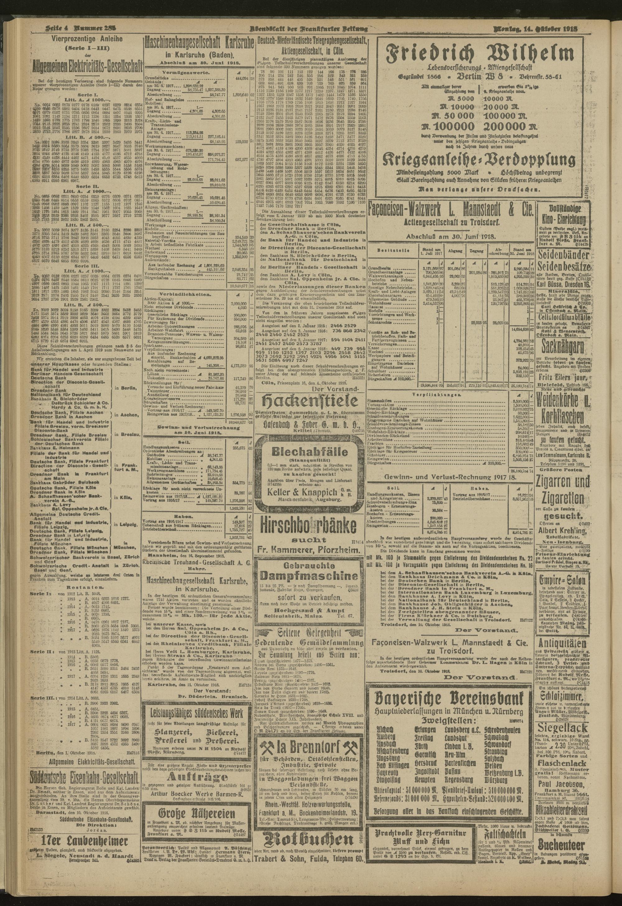 14.10.1918 = Nr. 285. Abendblatt