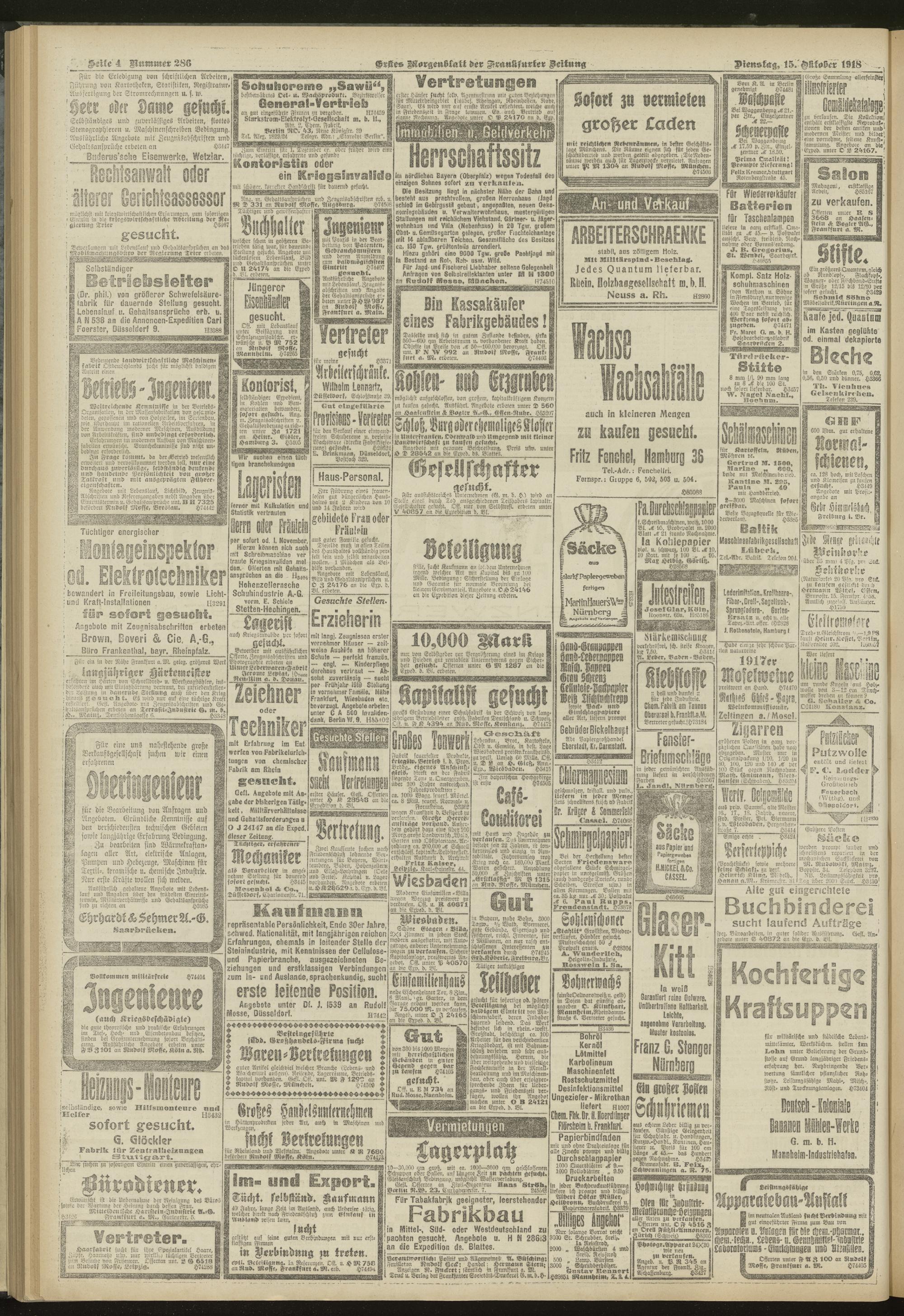 15.10.1918 = Nr. 286. Erstes Morgenblatt
