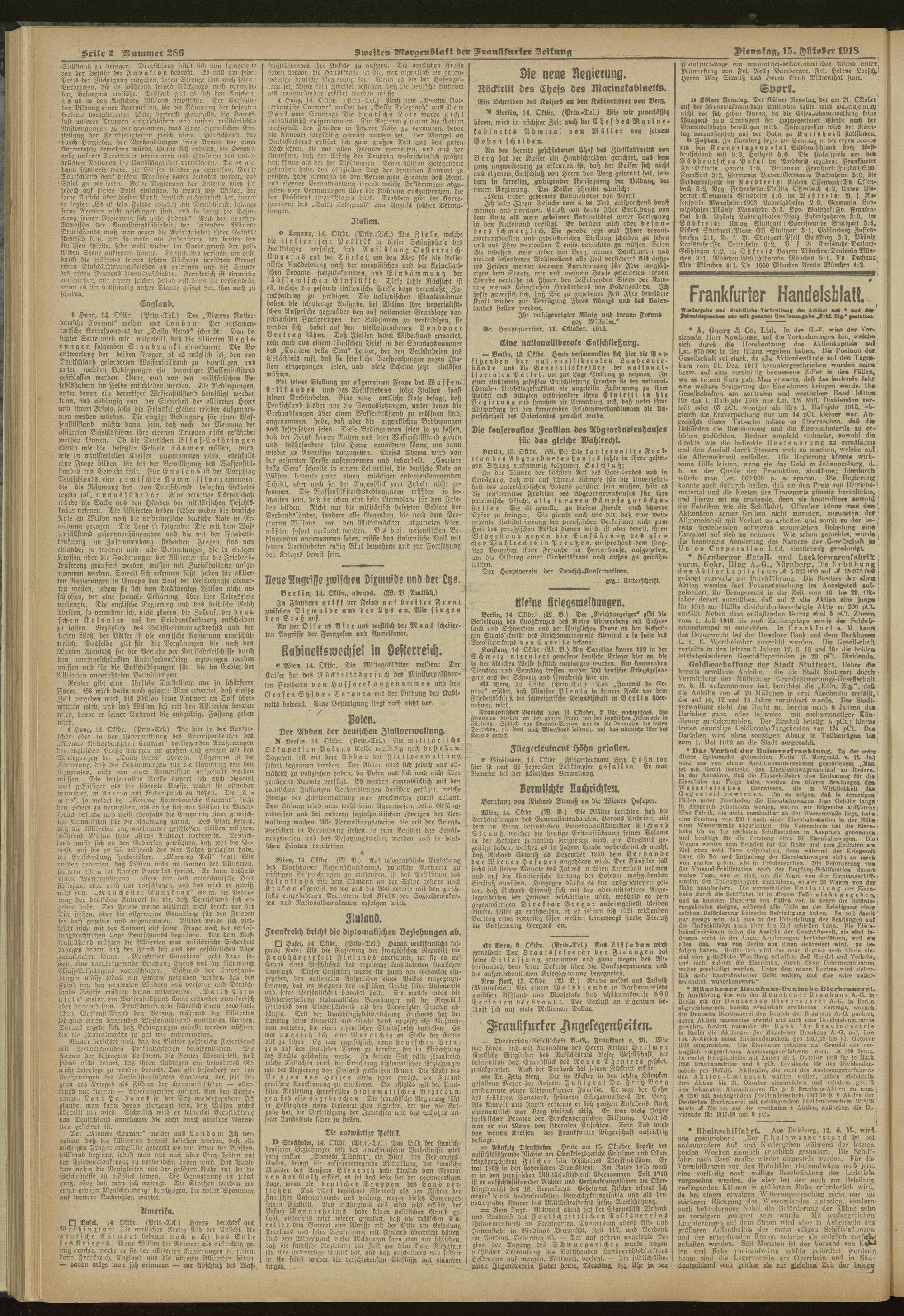 15.10.1918 = Nr. 286. Zweites Morgenblatt