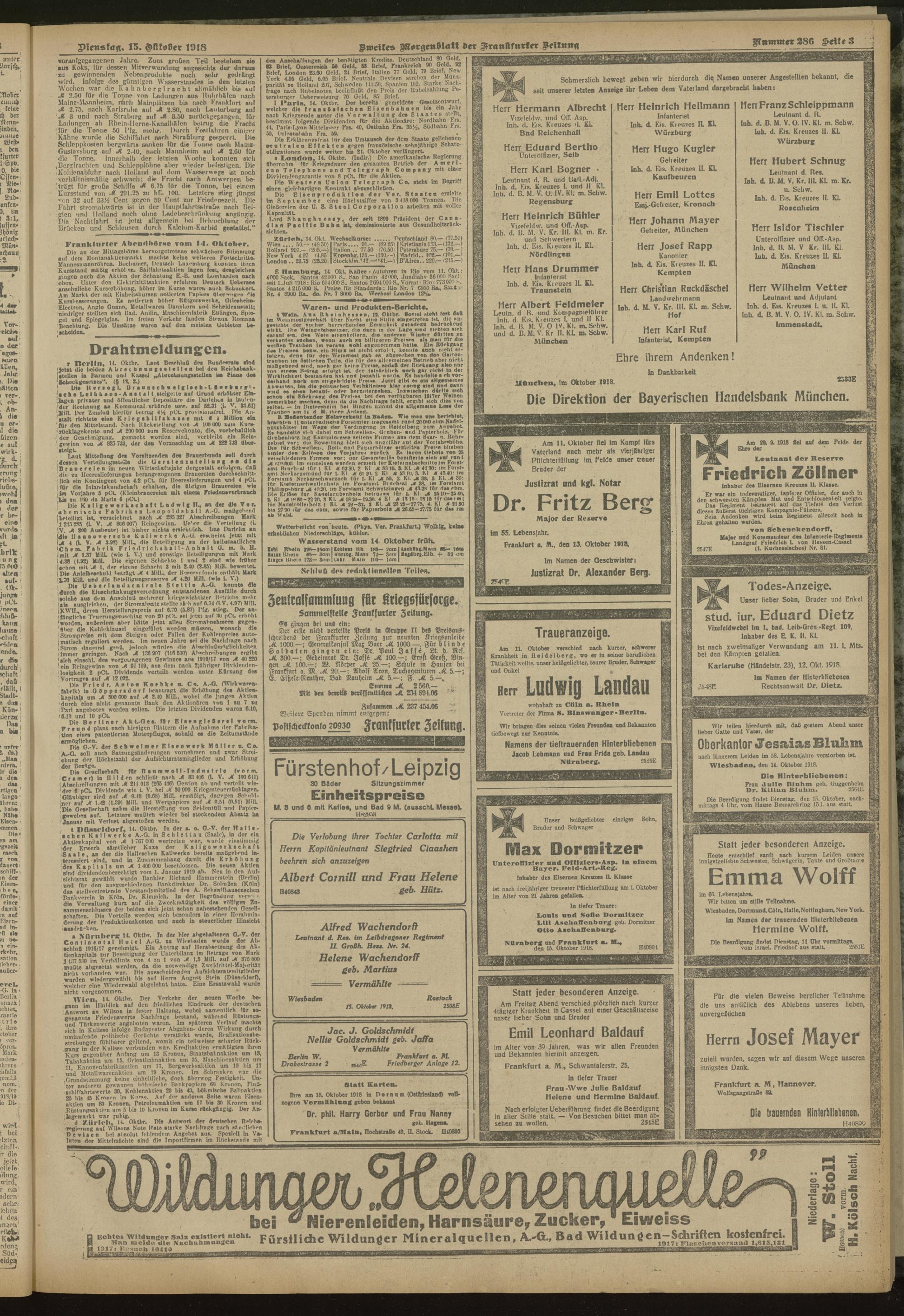 15.10.1918 = Nr. 286. Zweites Morgenblatt