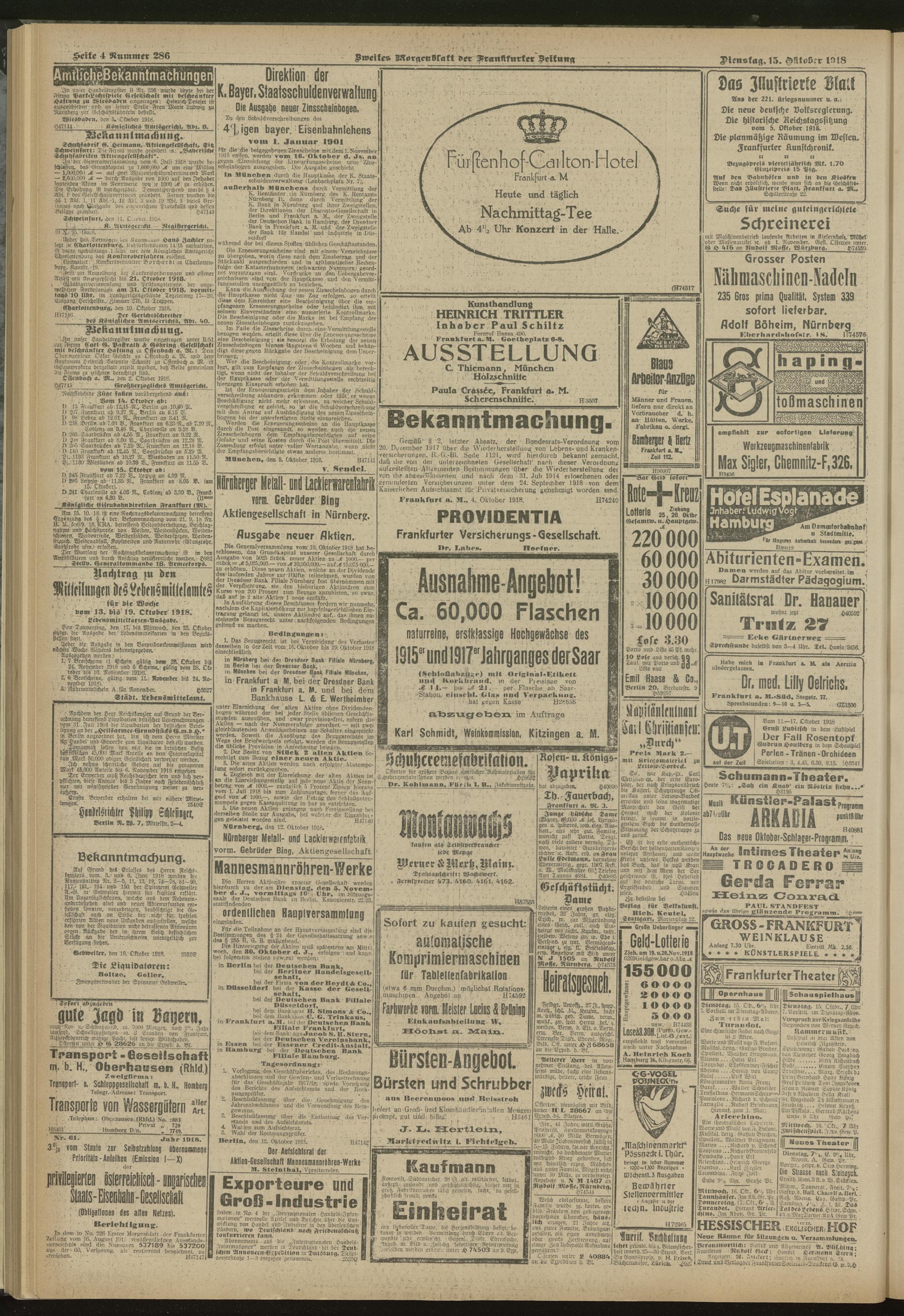 15.10.1918 = Nr. 286. Zweites Morgenblatt