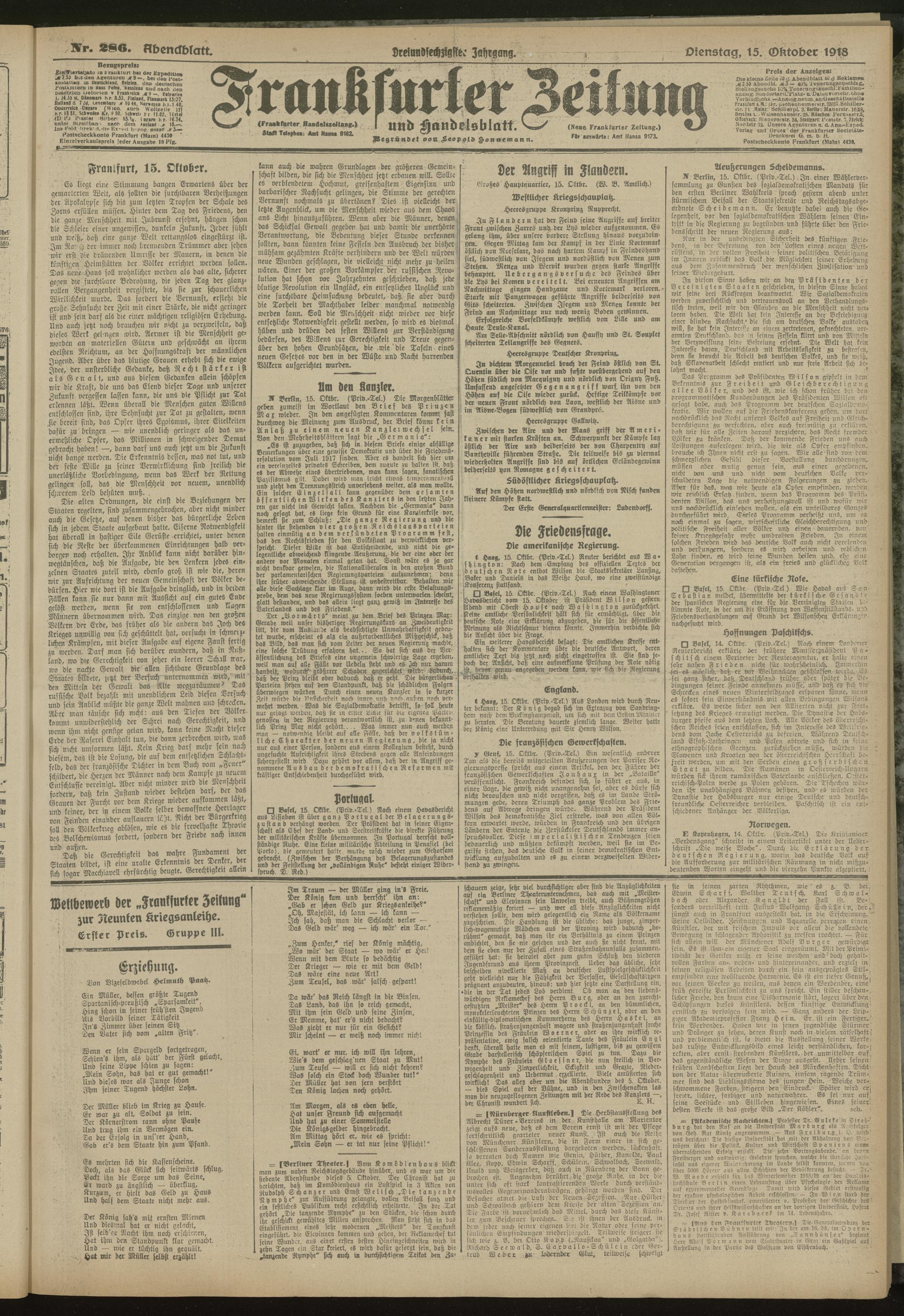 15.10.1918 = Nr. 286. Abendblatt