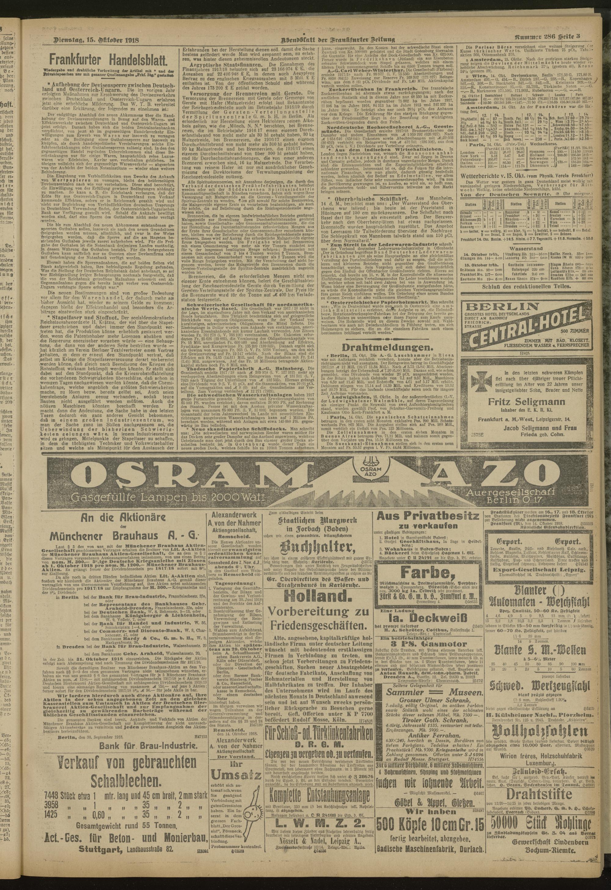 15.10.1918 = Nr. 286. Abendblatt