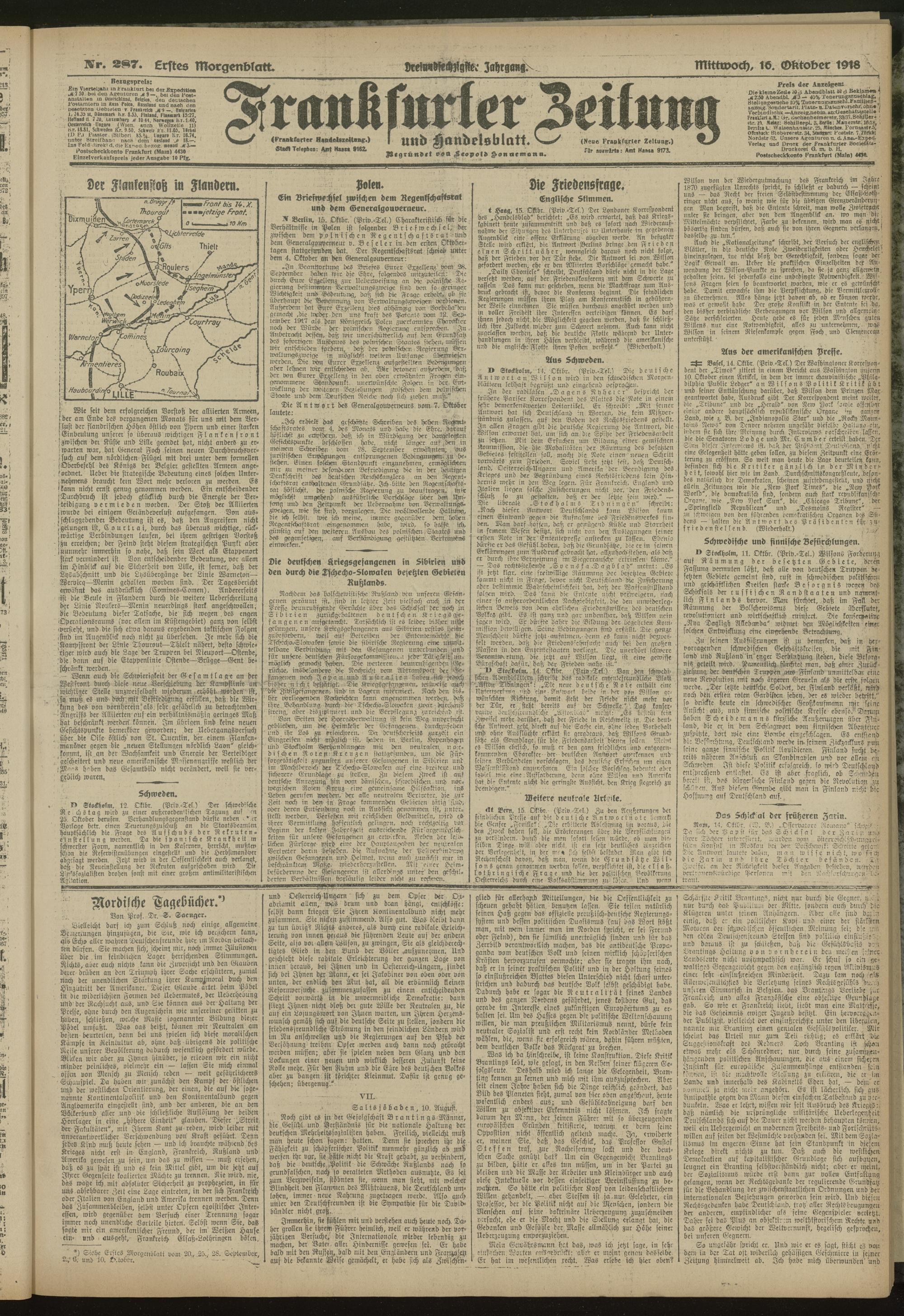 16.10.1918 = Nr. 287. Erstes Morgenblatt