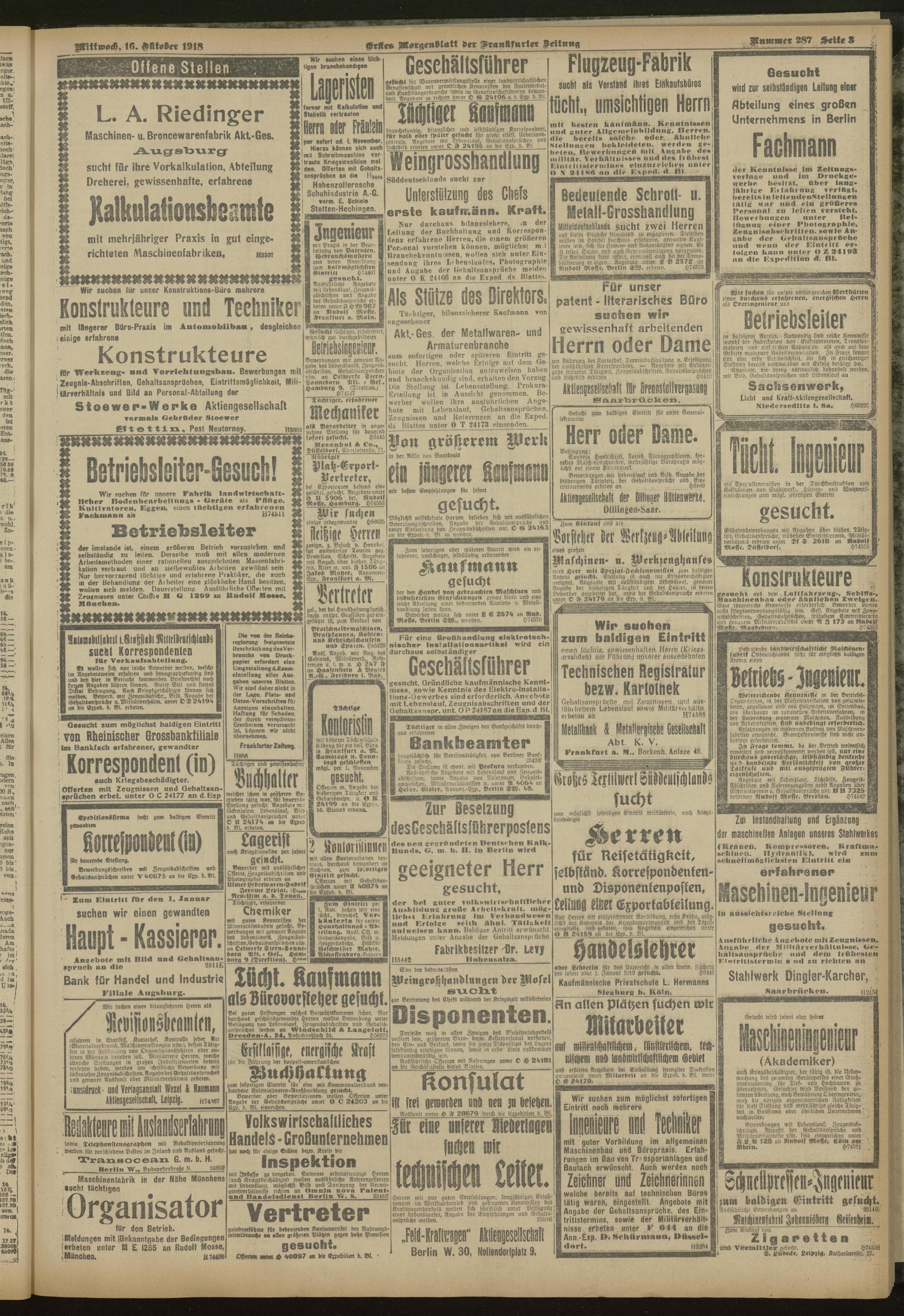 16.10.1918 = Nr. 287. Erstes Morgenblatt