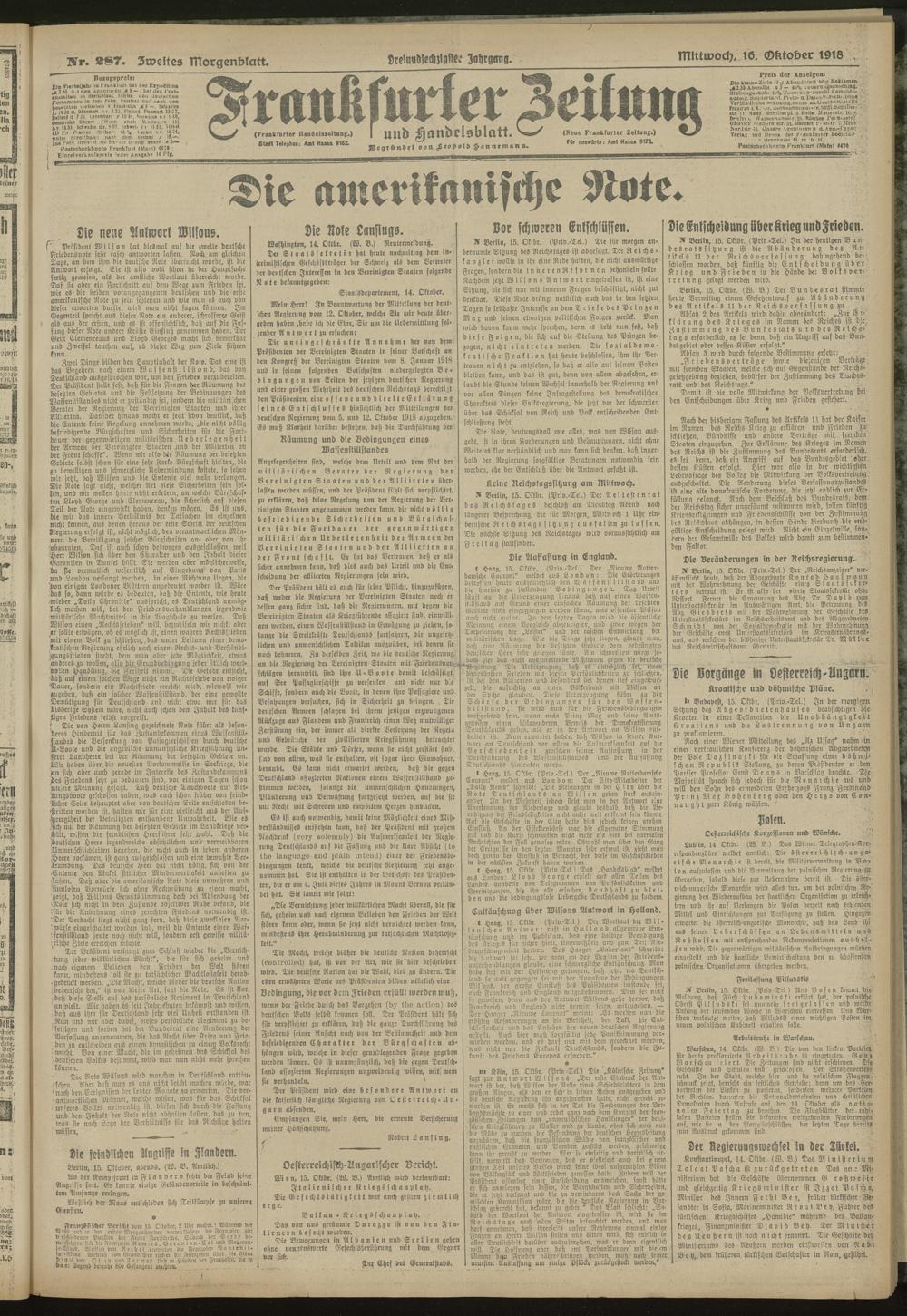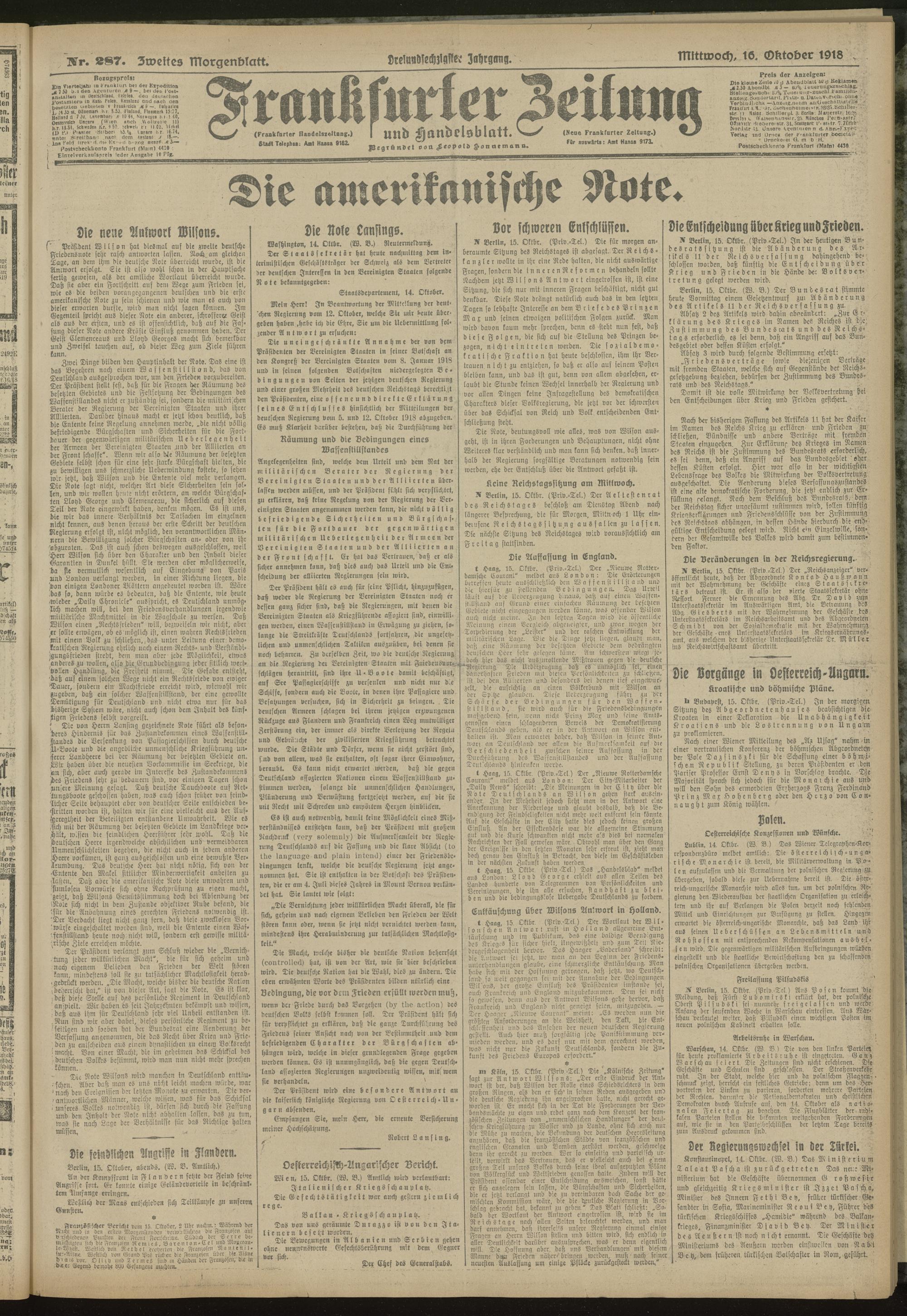 16.10.1918 = Nr. 287. Zweites Morgenblatt