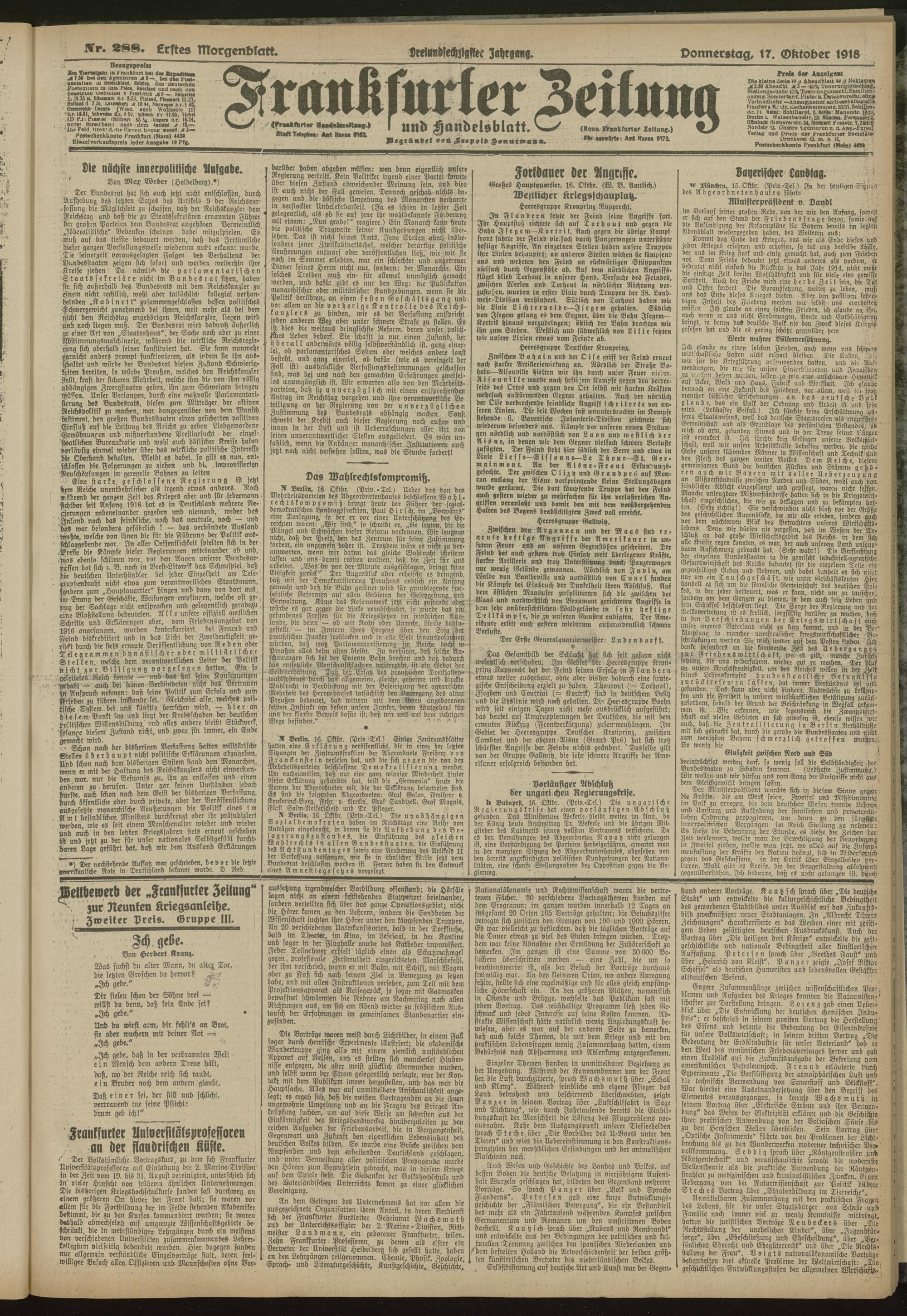 17.10.1918 = Nr. 288. Erstes Morgenblatt