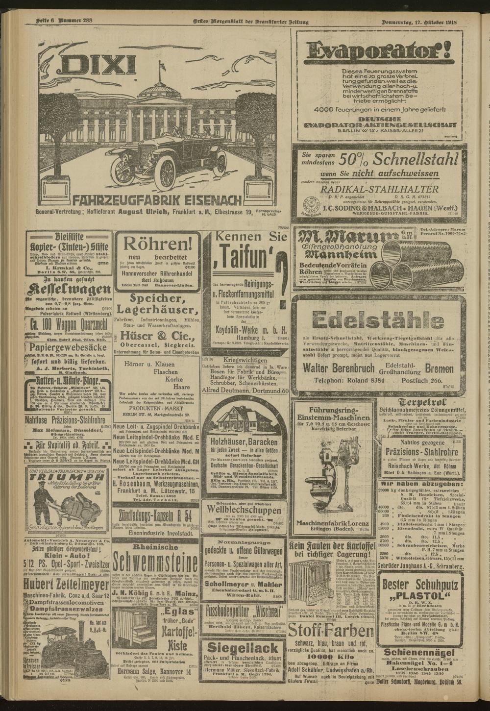 17.10.1918 = Nr. 288. Erstes Morgenblatt