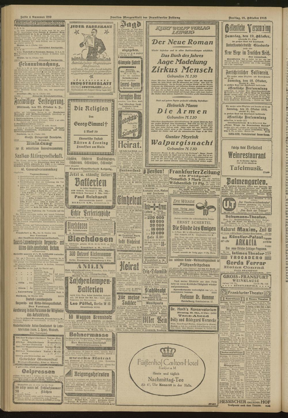 18.10.1918 = Nr. 289. Zweites Morgenblatt